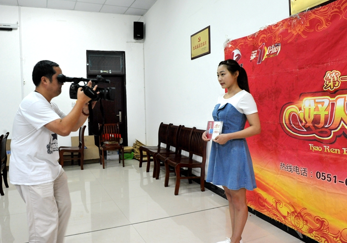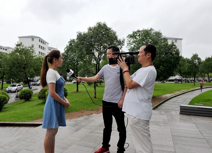 7月6日上午,安徽电视台经济生活频道《第一时间》栏目组到我校,拍摄我校2017级播音与主持艺术专业学生聂婷婷拾金不昧的事迹并为她颁发“好人榜”奖牌。