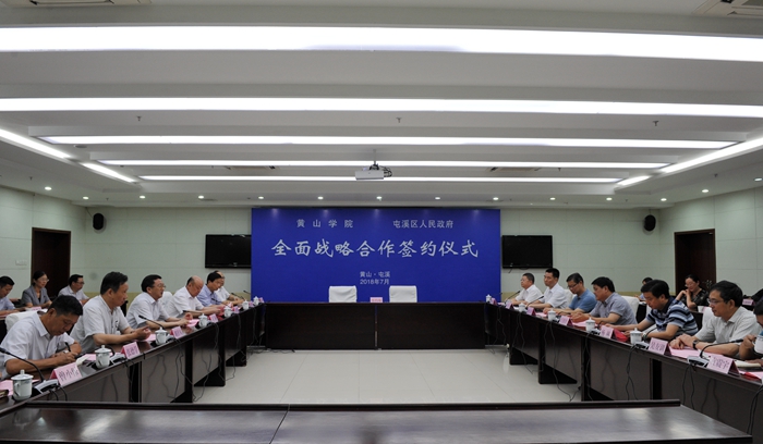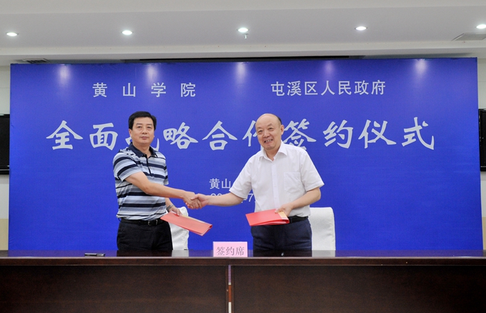 7月20日下午,我校与屯溪区校地全面战略合作签约仪式在屯溪区政务中心会议室举行。校党委书记汪枫,党委副书记胡家俊,副校长胡善风,党委委员、副校长刘英旺,屯溪区委书记江善良,区委副书记、代区长杨林,区人大常委会主任徐灶米,区政协主席吴友训,区委副书记汪长剑,区委常委、区政府常务副区长袁震宇,区委常委、区政府副区长周权,区委常委、组织部长程峰出席会议。校办公室、组织部、宣传部、人事处、科研处、学生处、团委、旅游学院、体育学院、教育与科学学院负责人及屯溪区委区政府办、组织部、宣传部、编办、发改委、教育局、科技局、人社局、住建委、农委、旅游局、团区委、文明办、九龙园区负责人等40余人参加会议。会议由汪长剑主持。