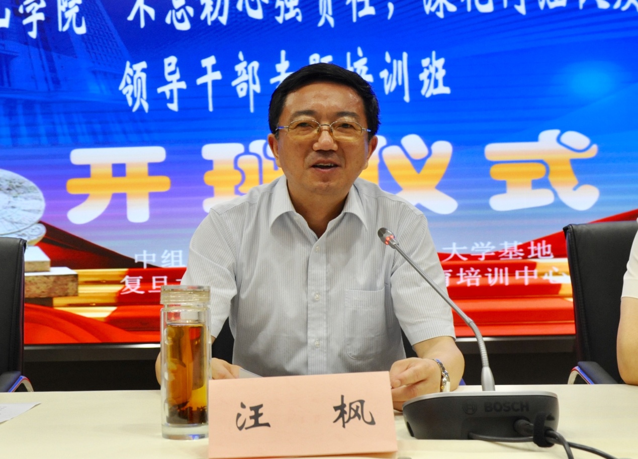 7月28日上午,我校领导干部专题培训班在中组部干部教育培训基地——复旦大学开班。校党委书记汪枫,党委副书记胡家俊,党委委员、副校长刘英旺,复旦大学管理学院干部教育培训中心主任黄莹出席开班仪式。汪枫作动员讲话。