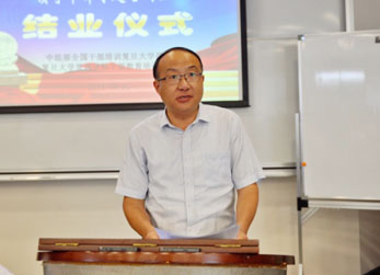 汪枫主持结业式并作总结讲话。他指出,五天紧张有序的培训学习在全体学员的共同努力下圆满完成所有任务。本次培训主题突出、内容丰富、组织到位,达到预期目的,取得良好效果。培训班是一次成功的理论学习班、一次成功的工作交流会、一次成功的爱国主义教育现场会。培训紧扣主题、精心设计,内容既有国家大政方略的高端解读,也有高校教育改革发展的紧密结合,既有专家讲授、现场教学,也有交流研讨、自学提升。几天来,大家认真学、深入学,学习精神可佳,谋发展、促工作,学习成效显著;找差距、知不足,学习感受深切,要进一步巩固学习成果,扩大学习成果的覆盖面。