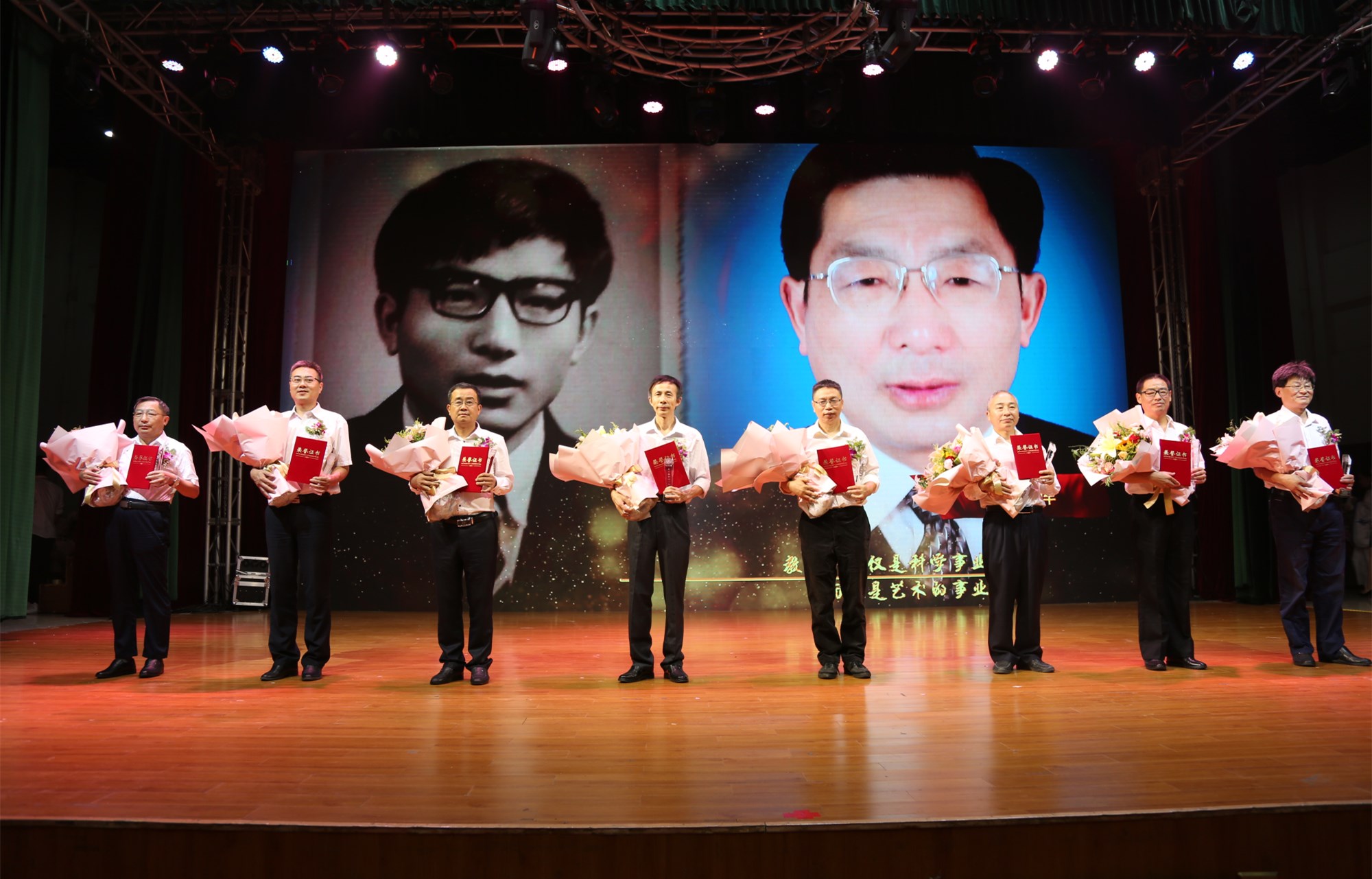 表彰大会在三十年教龄教师的专题片中徐徐展开。专题片用镜头语言直观形象地回顾了70名受表彰教师的今昔30年。30年中,他们扎根教育,不忘立德树人的初心,坚守教书育人的使命,兢兢业业,勤勤恳恳,为学校的建设发展贡献了青春和力量。