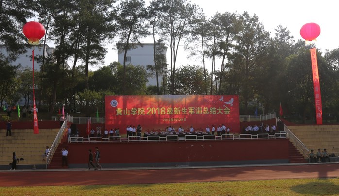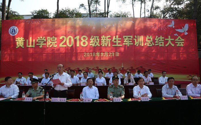 9月29日上午,我校在率水校区第一田径场召开2018级新生军训工作总结大会。校党委书记汪枫,党委副书记胡家俊,党委委员、副校长刘英旺,黄山军分区副司令员赵启发,武警黄山市支队政委汪昌喜出席会议。2018级军训领导组成员、全体教官、2018级新生辅导员及全体2018级新生参加大会。胡家俊主持会议。