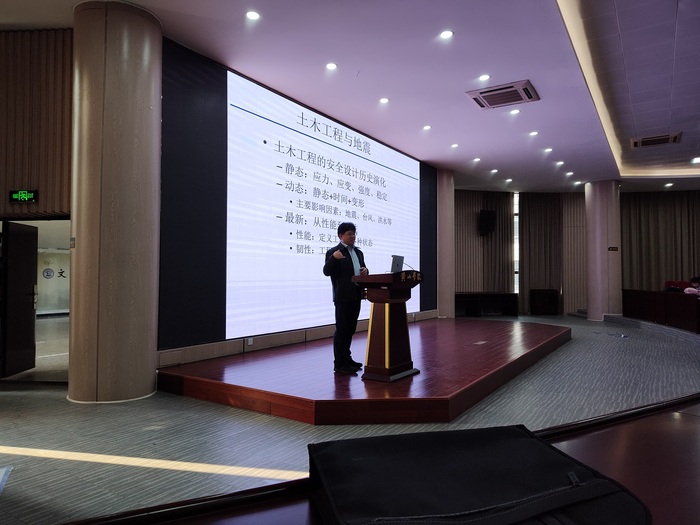 2月20日下午,中国地震局工程力学研究所研究员王自法博士应邀来校为建筑工程学院师生作题为《地震巨灾风险的量化及其应用》的学术报告,该院200多名师生参加。该院相关负责人主持报告会。