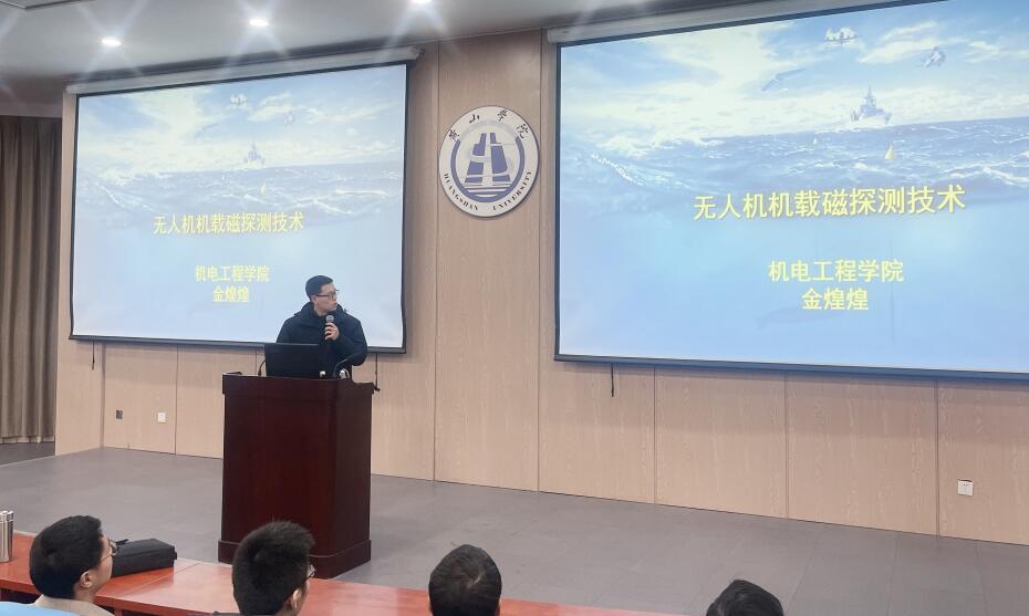 2月22日下午,我校“行知讲坛”第180讲在文端楼一楼报告厅举行。机电工程学院博士金煌煌应邀作题为“无人机机载磁探测技术”主题报告,机电工程学院共200余名师生聆听报告。