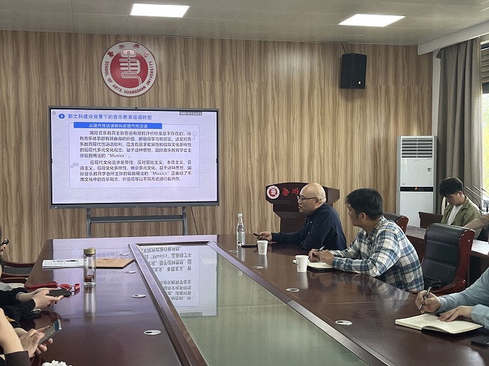 4月17日下午,艺术学院在文敏楼308会议室举办题为“新文科建设背景下中国音乐教育话语审思”学术讲座。安徽师范大学音乐学院博士生导师朱玉江教授应邀主讲。讲座由艺术学院副院长史一丰主持,音乐学教研室全体教师和部分学生聆听了本次讲座。