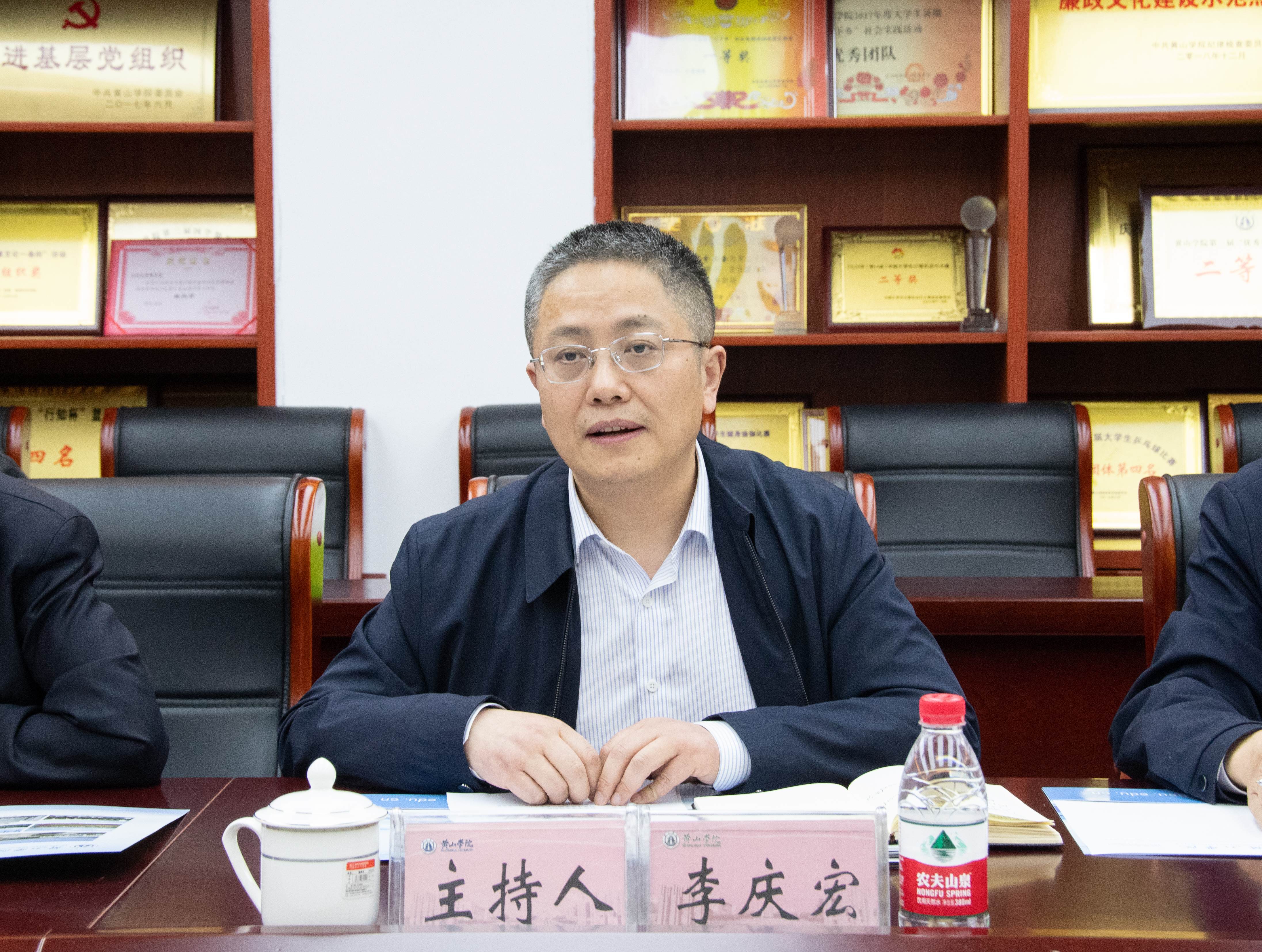 李庆宏代表学校对各位领导、专家来我校指导交流、传经送宝表示热烈欢迎,并介绍了我校的校史校情和地方应用型高水平大学建设的基本情况以及学校在办学过程中依托地域优势形成的旅游、生态和徽文化特色亮点。他表示,我校将以此次调研为契机,立足全媒体时代教育实际,提高应用型传媒文化人才培养质量,提升传媒类专业人才队伍建设,推进高质量实践实训平台建设。希望两校进一步加深友谊,建立起互联互通的长效机制,在人才培养、师资队伍建设、内涵式发展等方面给予指导与支持,实现人才资源互补,探索共赢发展方向。
