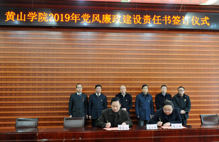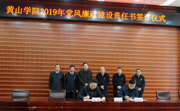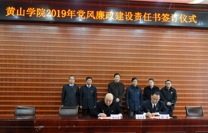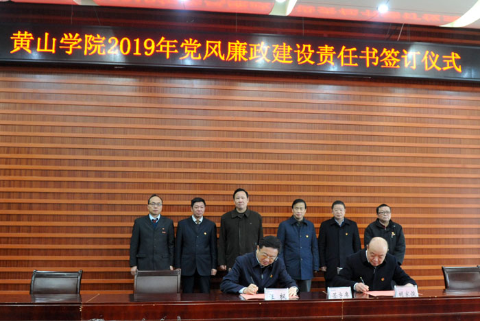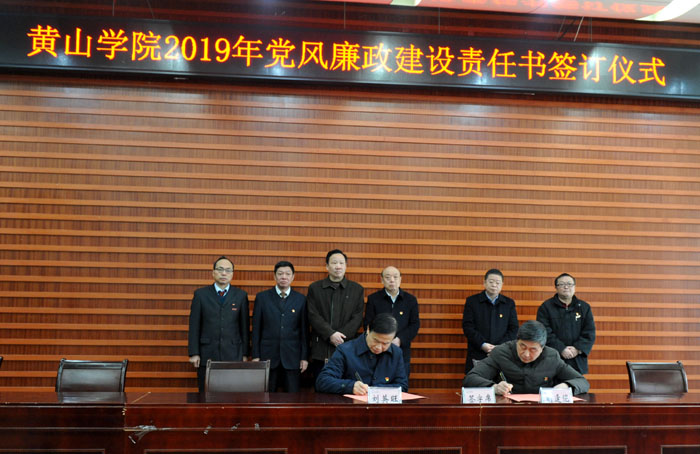 会上举行了2019年党风廉政建设责任书签订仪式。校党委书记与校领导班子成员、校领导与各自分管联系的处级单位负责人代表分别签订了2019年党风廉政建设责任书。