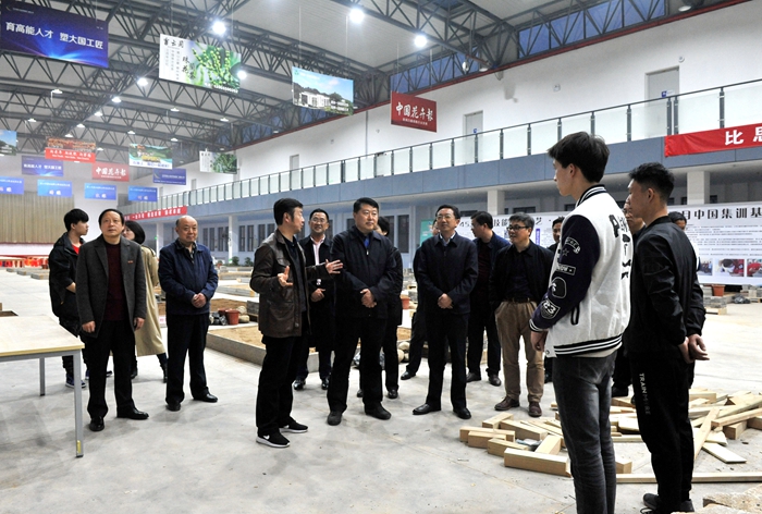 在校实习实训基地——安徽润一工程景观有限公司与备战世界技能大赛的我校学生亲切交谈