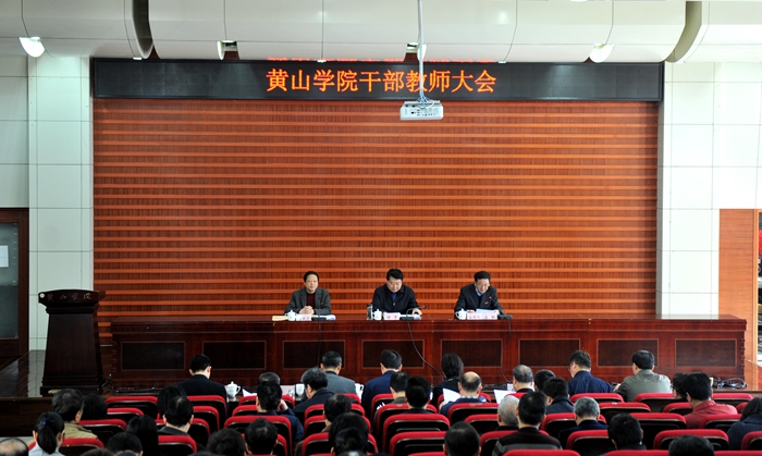 汪枫代表学校党政领导班子在会上作了2018年度工作总结报告。他在报告中指出,2018年,在省委、省政府和省委教育工委、省教育厅的正确领导下,学校党政领导班子紧紧围绕学校中心工作,团结带领广大师生员工,锐意进取,开拓创新,较好地完成了年度目标任务,各项工作取得了新的成效。一是坚持党要管党,全面从严治党,切实加强和改进党的建设,为学校事业发展提供坚实保障。旗帜鲜明讲政治;坚持学懂弄通做实习近平新时代中国特色社会主义思想和党的十九大精神;扎实开展中国特色社会主义和中国梦的宣传教育;严格落实意识形态工作责任制;加强和改进思想政治工作;深入开展文明校园创建工作;认真做好干部教育培训工作;加强领导班子和干部队伍建设;加强人才工作;抓好基层党组织建设;加强和改进党员队伍教育管理;加强和改进群团工作;深入落实中央八项规定精神及我省实施细则;扎实推进“两学一做”学习教育常态化制度化;坚持把纪律和规矩挺在前面;保持惩治腐败高压态势;认真落实党风廉政建设“两个责任”;扎实做好巡视“回头看”整改工作;做好新形势下统战工作;发挥党委领导核心作用;坚持和完善民主集中制;落实协调运行工作机制;完善和落实党建工作责任制;做好校园安全稳定及综治工作;强化党建工作基础保障;加强党的建设重大问题调查研究;坚持抓党建促发展。二是坚持改革创新,求真务实,扎实推进地方应用型高水平大学建设,推进学校各项事业科学发展。明确办学定位与指导思想;推进现代大学制度建设;培育和践行社会主义核心价值观,推进教育教学改革;落实教学工作中心地位;加强教学质量保障体系;毕业生就业质量不断提高;完成大学生征兵工作;积极推进创新创业教育改革;搭建大学生创新创业平台;做好大学生创新创业教育;贯彻落实国家和省教师队伍建设决策部署;重视优秀人才的引进和培育;深化教师人事制度改革;创新科研体制机制;强化科研平台与团队建设;规范科研项目管理;有效提升学科竞争力;深入推进产学研用合作;发挥教学科研资源优势,为社会提供服务;大力弘扬中华优秀传统文化,重视人文社会科学建设;加强校园文化建设;积极推广普及国家通用语言文字;推进国际化发展规划;促进中外双向留学,打造留学安徽品牌;完善办学机制,提高涉外办学水平;丰富人文交流,积极传播中国文化、安徽文化;加强国际学术交流;重视学科建设;年度履行职能和事业发展中成效显著、特色明显。三是认真做好2017年度综合考核反馈问题整改。学校以迎评促建为抓手,进一步提升了教育教学质量;优化干部队伍结构,完成了科级干部聘任工作,切实加强各级干部教育培训,提升干部综合素质;加大人才引培力度,师资队伍结合不断优化;夯实基层党组织建设,扎实推进了基层党组织规范化、标准化,2017年度综合考核反馈问题整改工作扎实推进、成效显著。
