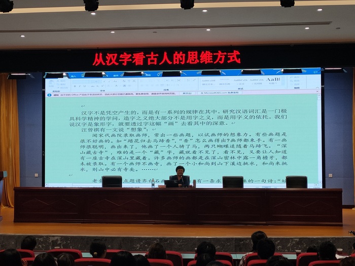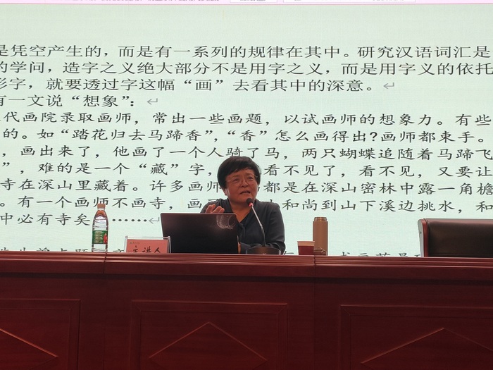 9月22日晚,浙江大学王云路教授应邀在文博楼二楼报告厅作题为“从汉字看古人的思维方式”的学术报告,报告会由文学院院长沈昌明主持,文学院两百多名师生聆听报告。