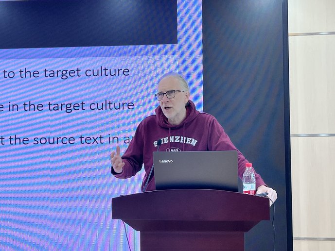 11月24日下午,匈牙利科学院文学研究所学术顾问、国际比较文学研究权威期刊Neohelicon主编彼得·海居(Péter Hajdu)教授应邀在逸夫综合楼5306教室,作主题为“Translations of Western and Chinese Classics in Socialist Hungary”的英语讲座。外国语学院院长洪常春主持讲座,学院师生100余人参加了本次讲座。