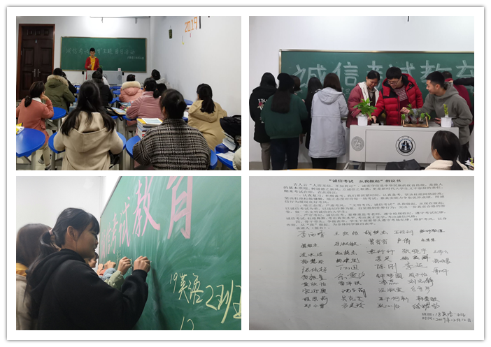 活动形式多样,内容丰富。包括《学生手册》学习会、“诚信考试之我见”讨论分享会,诚信考试宣誓活动,诚信考试承诺签名活动。17日语班李乐园说:“期末考试在即,我们应自觉遵守作息制度,合理安排复习时间。做到早睡早起、规律生活、稳扎稳打、循序渐进,以饱满的精神和昂扬的斗志做好期末考试准备。”19英语4班张纪龙说:“诚信是做人之本。我们要从自己做起,从现在做起,充分利用复习时间,系统复习各门课程,坚决杜绝懒散慵懒,端正态度对待每一场考试,诚信的备考。”