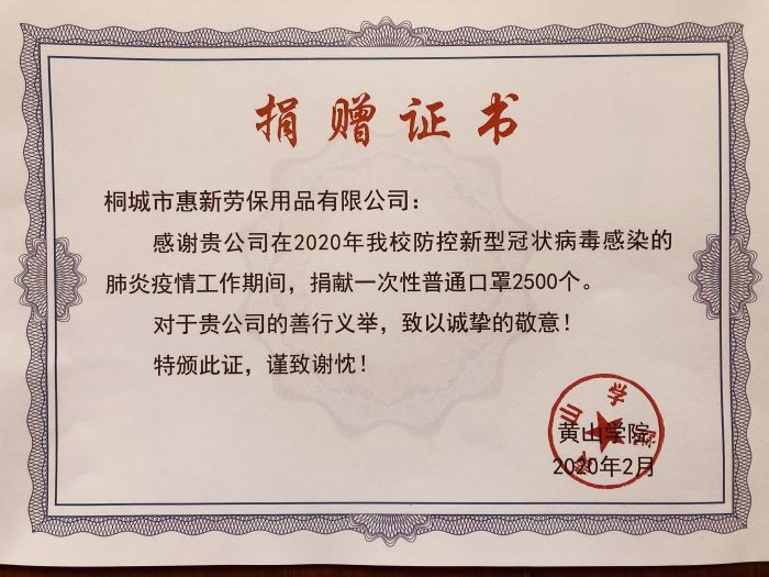新冠肺炎疫情爆发以来,口罩成为了紧缺的防疫物资。桐城市惠新劳保用品有限公司负责人鲁春来表示,自己的孩子是博业体育(中国)官方网站-登录入口19级食品科学与工程专业的学生,全家人考虑到学校可能也存在口罩短缺的情况,就想给学校捐赠一些口罩,为学校做些力所能及的事情。