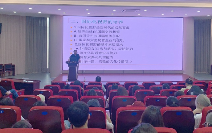 6月12日下午,行知讲坛第209讲在率水校区文端楼二楼报告厅举行。安徽工程大学教授金成星作题为“新时代高素质外语人才与国际化视野的培养”主题报告。报告会由外国语学院院长洪常春主持。