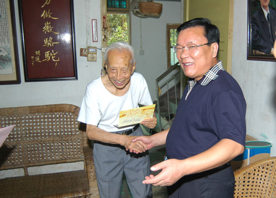 7月30日上午,校党委书记汪良发、副院长汪大白在校办公室主任胡家俊、工会副主席王瑞珍、党委宣传(统战)部副部长汪家庚等的陪同下,来到北校区黄澍教授的家,代表学校党委、行政向这位德高望重的老教授祝贺90岁的生日。