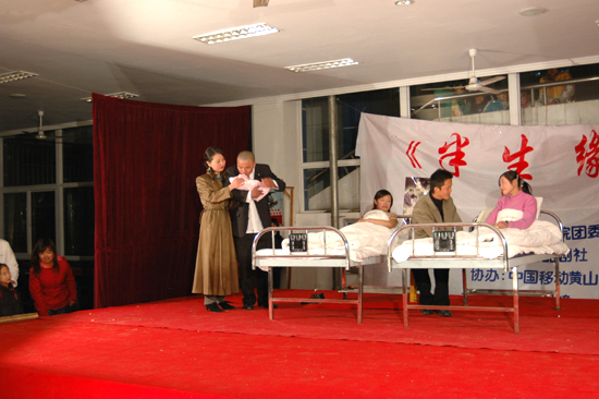 12月17日晚,由校团委、外语系主办,厚普品剧社承办的大型话剧 ――《半生缘》在我校南区食堂一楼成功上演。