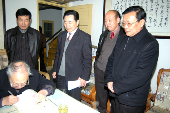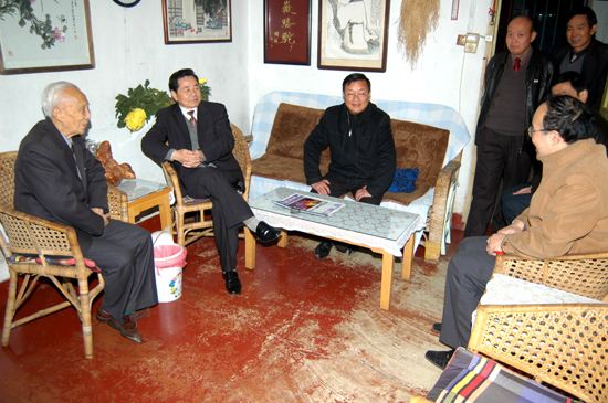 在校期间,汪石满还亲切看望了我院中文系教授、著名红学家白盾先生和我院数学系教授、著名书画家黄澍先生。 (文/汪承洋 图/夏广平)