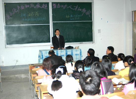 11月24日,安徽省人大常委会教科文卫委员会副主任、省委宣传部原常务副部长汪石满来我校作了题为《谈文化产业的发展趋势与对人才的需求》的学术报告。报告会由我校党委书记汪良发主持。