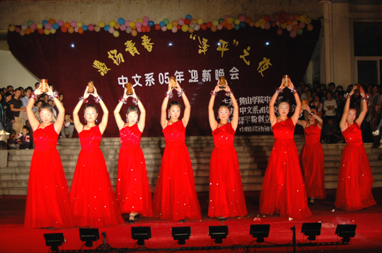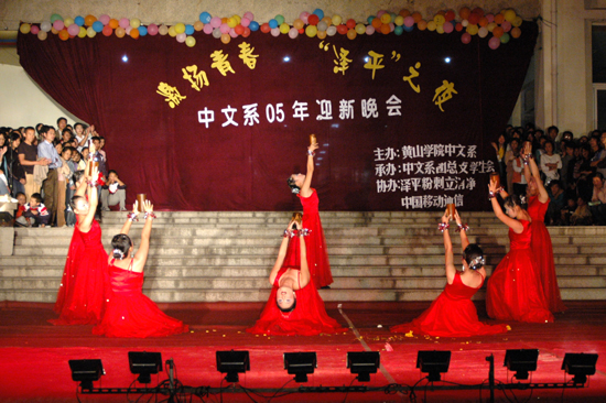 10月14日晚,我院南区人潮涌动,歌舞飞扬,整个校园沉浸在一片欢乐的海洋之中。由中文系主办的“激扬青春”05年大型迎新文艺晚会在南区露天舞台隆重举行。