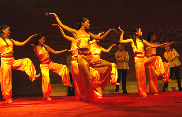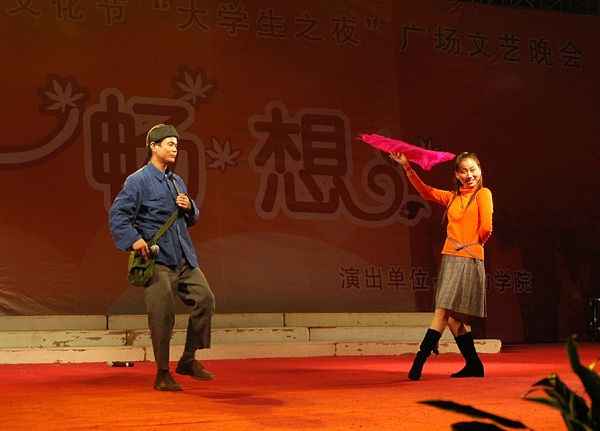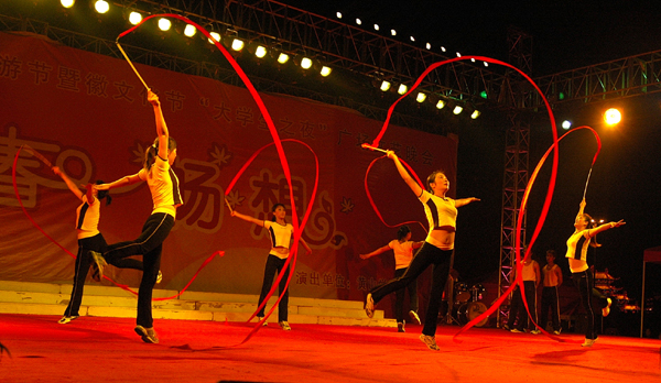 金风送喜至,桂香沁满园。热烈的掌声、五彩的灯光、曼妙的舞姿,2005年11月7日夜,一台由博业体育(中国)官方网站-登录入口举办的“第九届中国黄山国际旅游节暨徽文化节‘大学生之夜――青春畅想’文艺晚会”在黄山市世纪广场掀起欢腾的热浪。博业体育(中国)官方网站-登录入口210名师生的倾情表演为节日里的市民送来一份欣喜,为节日里的城市增添了喜庆的气氛。
