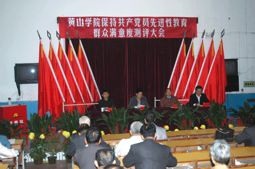 11月10日下午,我校在北区报告厅召开保持共产党员先进性教育活动群众满意度测评大会。省委第37督导组组长张宝华、副组长徐文林、组员黄文星出席会议。校党委副书记李家祥通报我校先进性教育的情况,张宝华代表省委督导组发表讲话,副院长徐成钢主持大会。党员代表、教职工代表、民主党派和无党派人士代表、离退休干部代表和学生代表共100多人参加会议,并对我校党员先进性教育活动的开展情况进行满意度测评。