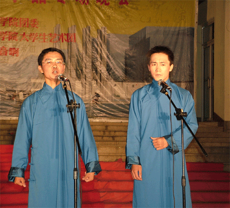 6月8日晚,我院南区校园沉浸在一片欢乐的海洋之中。由院团委主办、大学生艺术团承办的“超级逗翻天”相声小品专场晚会暨欢送05届毕业生晚会在南区露天舞台隆重举行。