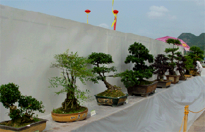 盆景区共有盆景30余盆,10余种素材,分别是红花继木、榕桩、榔榆、雀梅、罗汉松、赤楠、小叶赤楠等。