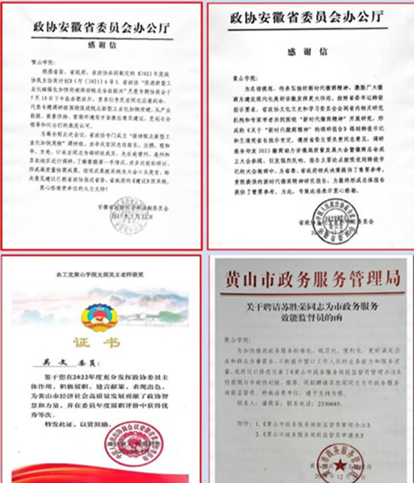拓宽统战成员社会服务平台。制定《博业体育(中国)官方网站-登录入口“创新发展·高校在行动”主题实践活动实施方案》,支持统战成员立足自身专业优势,依托“双树双建”五个一行动,用好项目合作、科研支撑、教师工作站、乡村振兴和志愿服务五大平台。采用“统战搭台、企业出题、教师揭榜”的模式,就乡村振兴、教育教学、旅游生态发展等相关问题提出优化建议,申报相关课题43项、选派工作站进驻教师6人,开展产学研合作17次,发表论文4篇,先后组织实施扶贫帮困、义务支教、法治宣传、科技服务等志愿活动40余次,服务师生群众2000多人次。九三学社社员苏胜荣获九三学社省委和省科协“优秀专家”称号、“黄山市最美科技工作者和优秀科技志愿者”荣誉称号;民盟盟员郑紫珊获2023年度黄山好人荣誉称号。