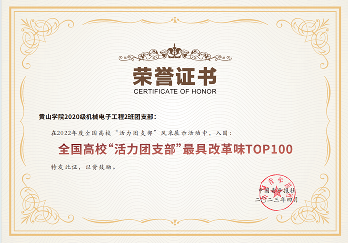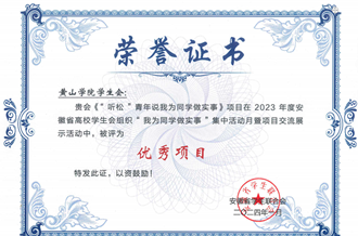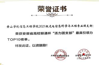 学校共青团以“五四表彰”“自强之星”“十佳大学生”等评选活动为抓手,发现榜样、宣传榜样、学习榜样。近年来,1人获评全国自强之星,1人获评安徽省最美大学生,1人获评安徽省百优大学生,1人获评安徽省十佳大学生,4人获评安徽省自强之星,1人获评黄山市好青年。2个团支部获评全国高校活力团支部,1人获评全国优秀共青团员, 1人获评安徽省优秀共青团干部,1人获评黄山市优秀共青团干部等荣誉称号。