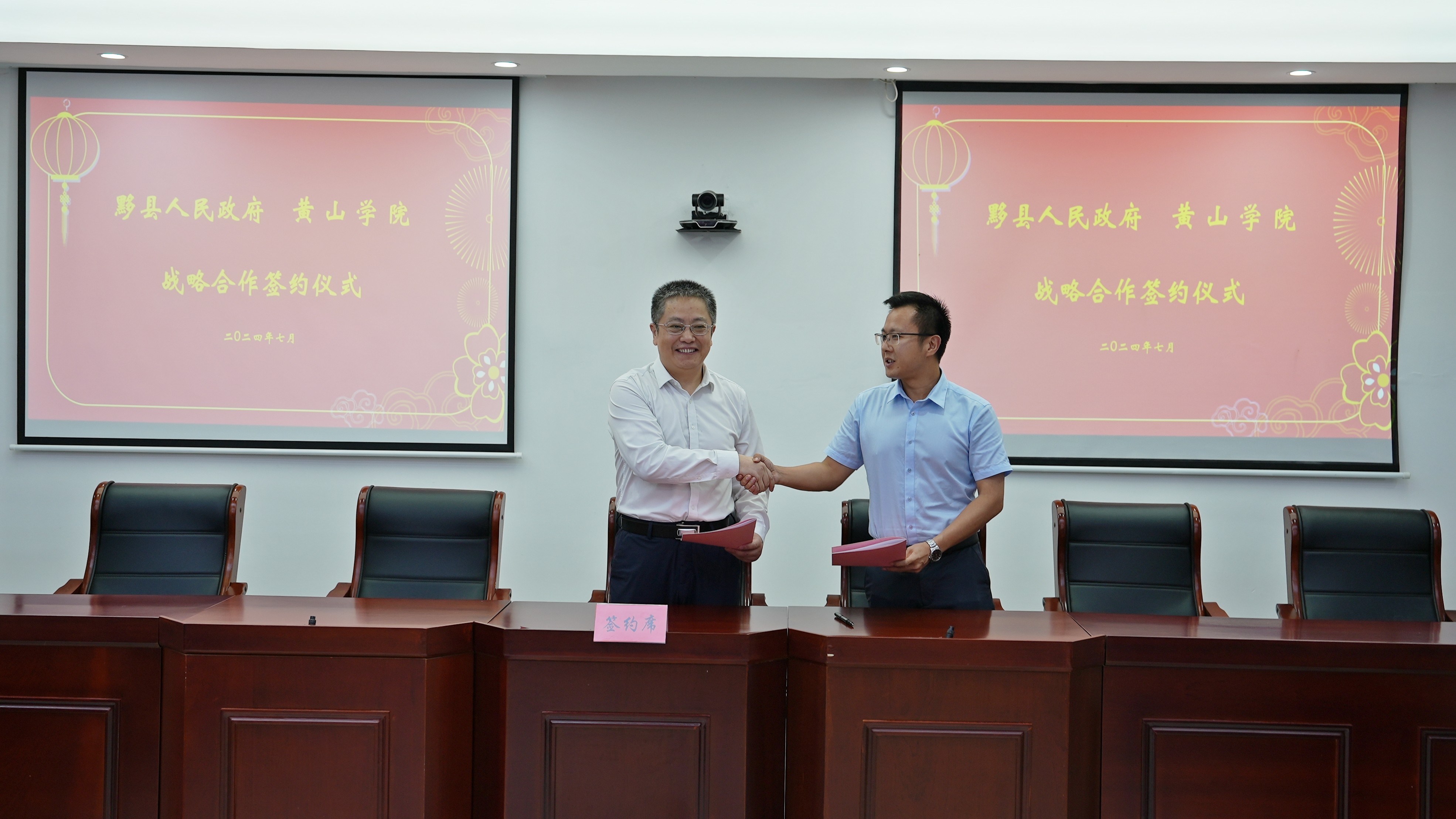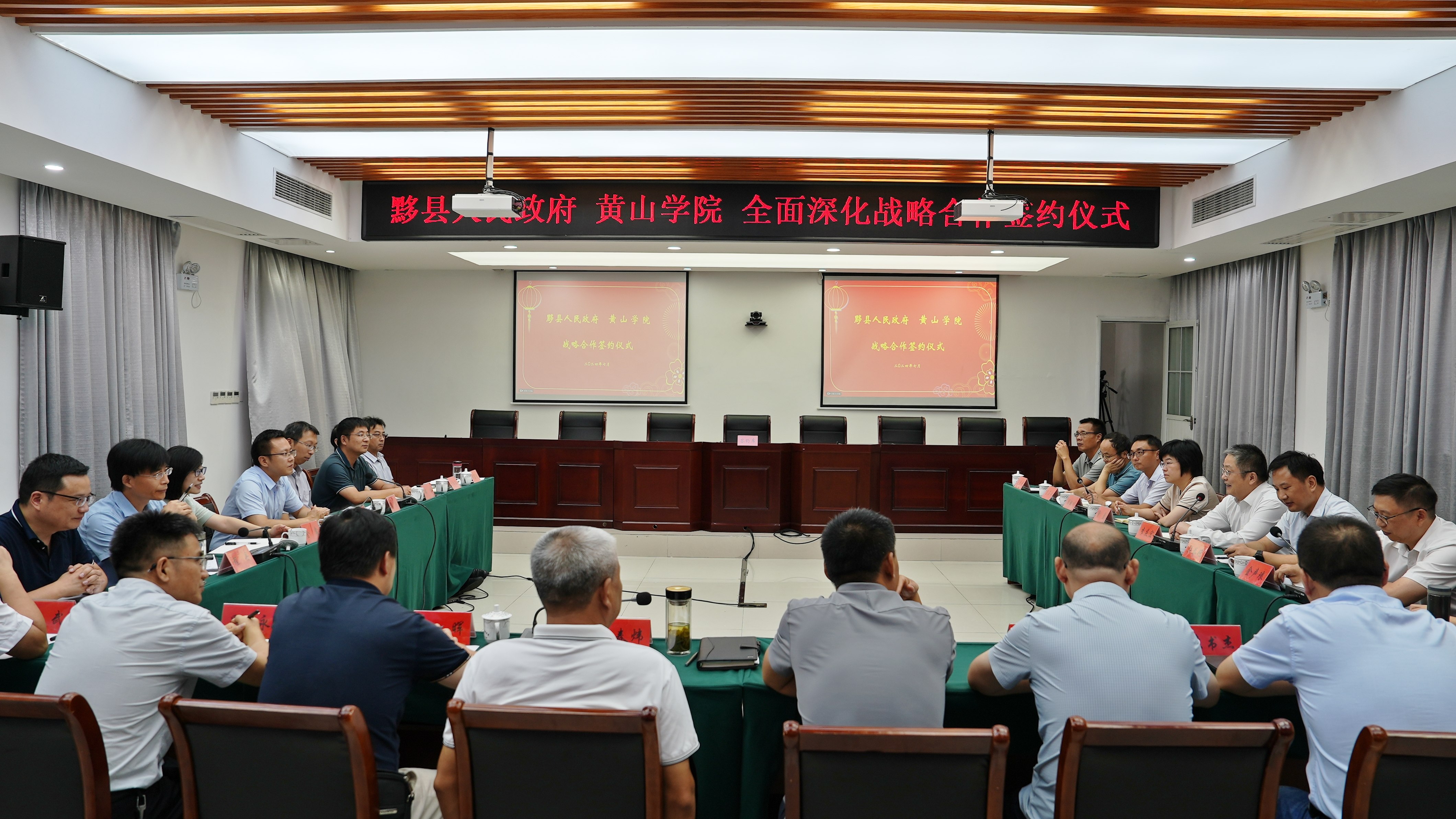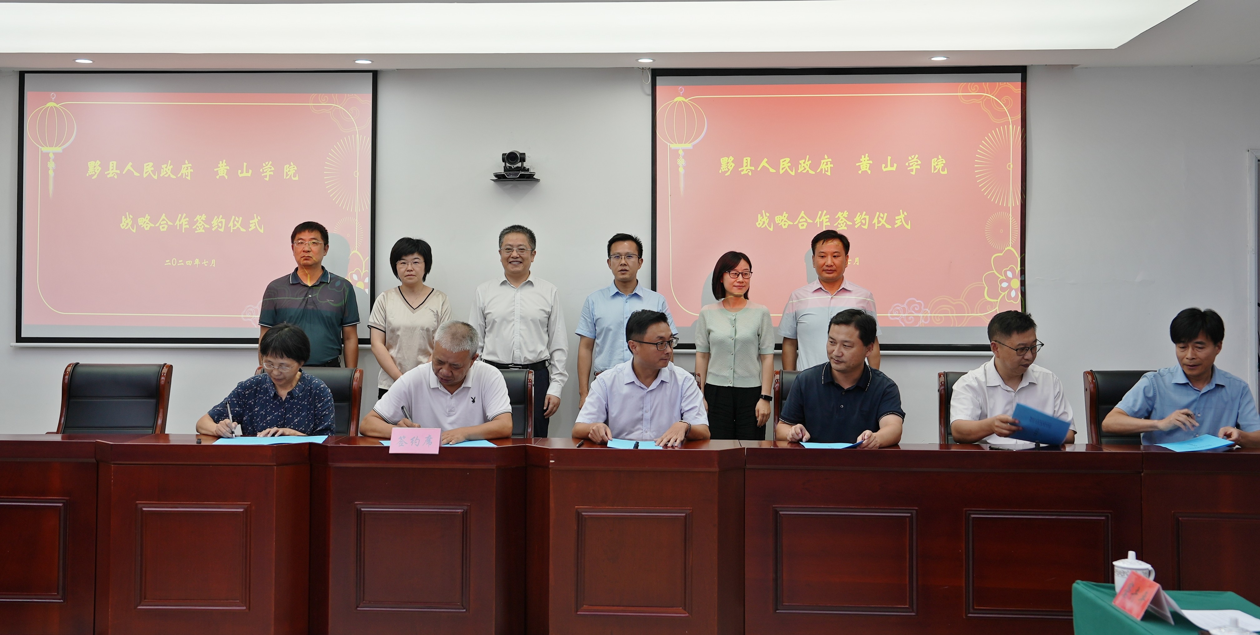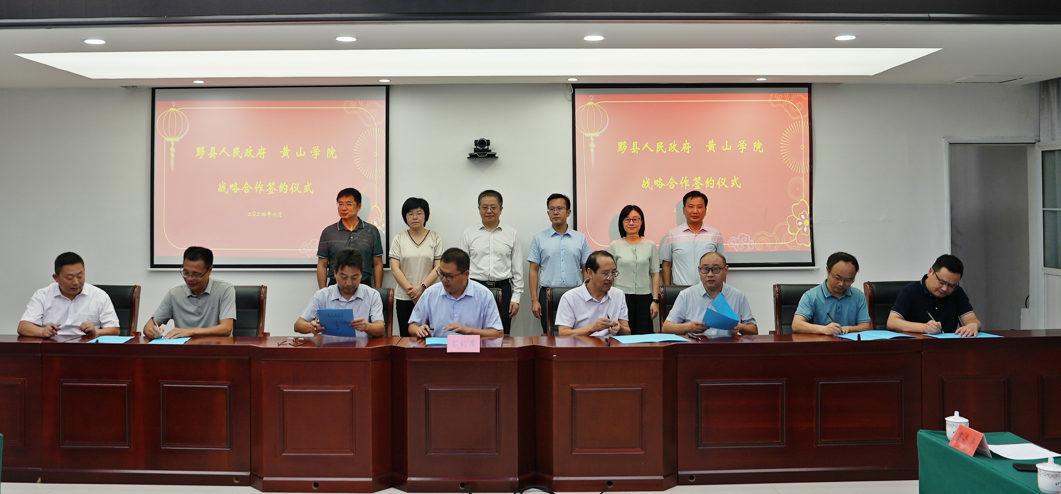 校办公室、人事处、科研处、学生处、旅游学院、建筑工程学院、生命与环境科学学院、信息工程学院、体育学院、教育科学学院相关负责人以及县委组织部、县文化旅游体育局、教育局、科技商务工业信息化局、人社局、住建局、农业农村水利局、徽黄旅游发展(集团)有限公司负责人等参加签约仪式。