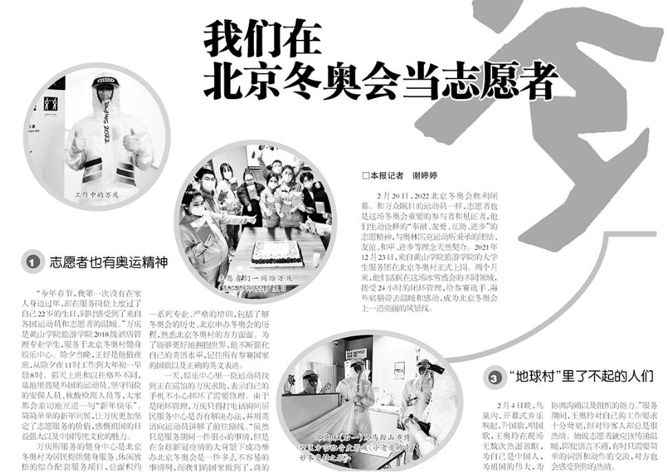坚持立德树人,持续深化思政育人力度、广度和深度。将课堂“搬”上黄山,聆听中国好人“守松人”胡晓春的守松故事,真切感受共爱岗敬业、无私奉献的恒心,积极传播正能量、真善美,弘扬社会主义核心价值观;选派学生参加2022年北京冬(残)奥运会、2023年亚运会等重大赛事的服务接待工作,将专业理论与实践运用结合,彰显青年学子的风采和担当。多名学生在国家级各类比赛中获奖,多人被浙江三立开元名都大酒店、同庆楼餐饮股份有限公司等实习单位表彰,一名学生荣获“全国优秀共青团员”称号。