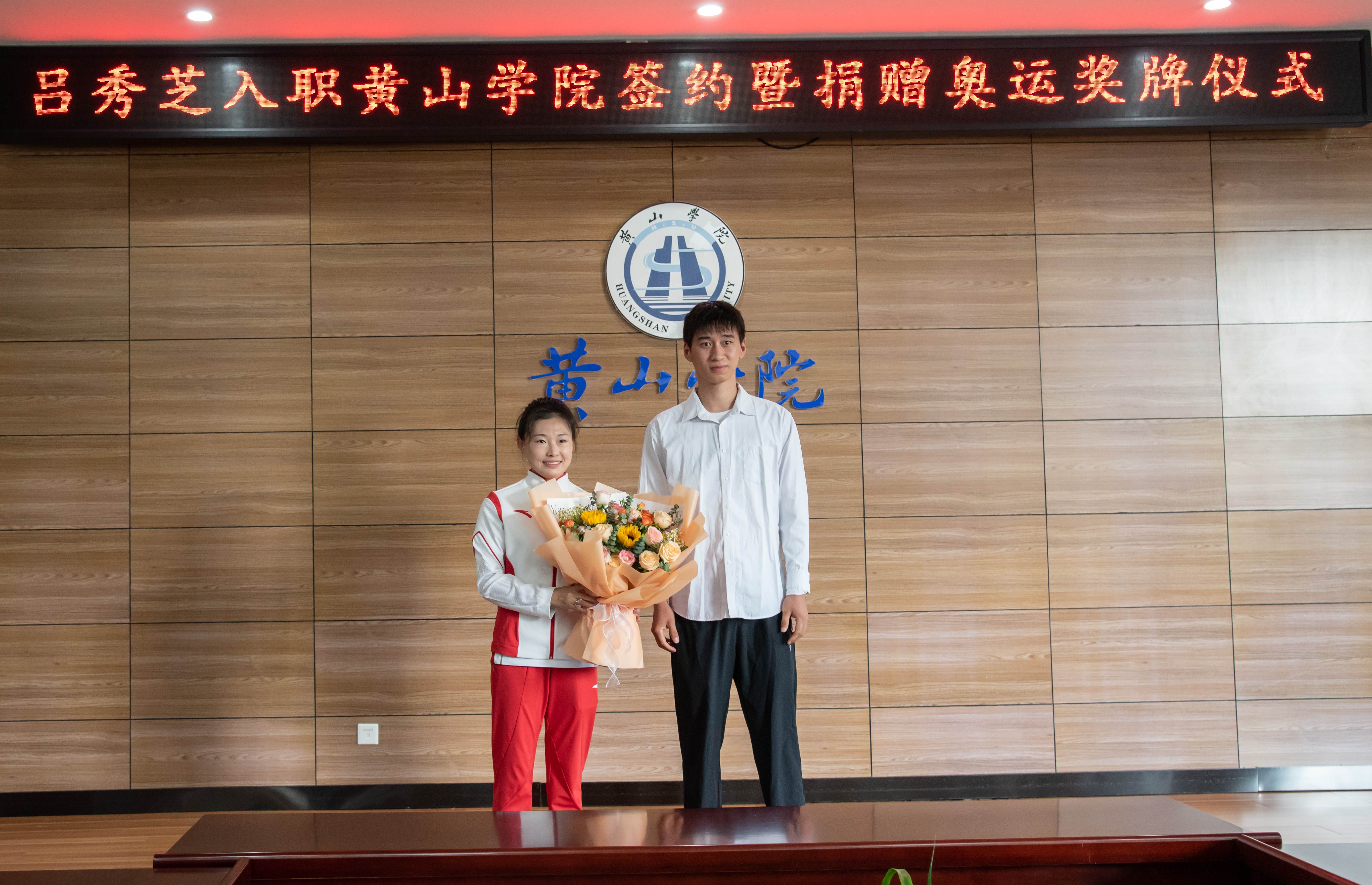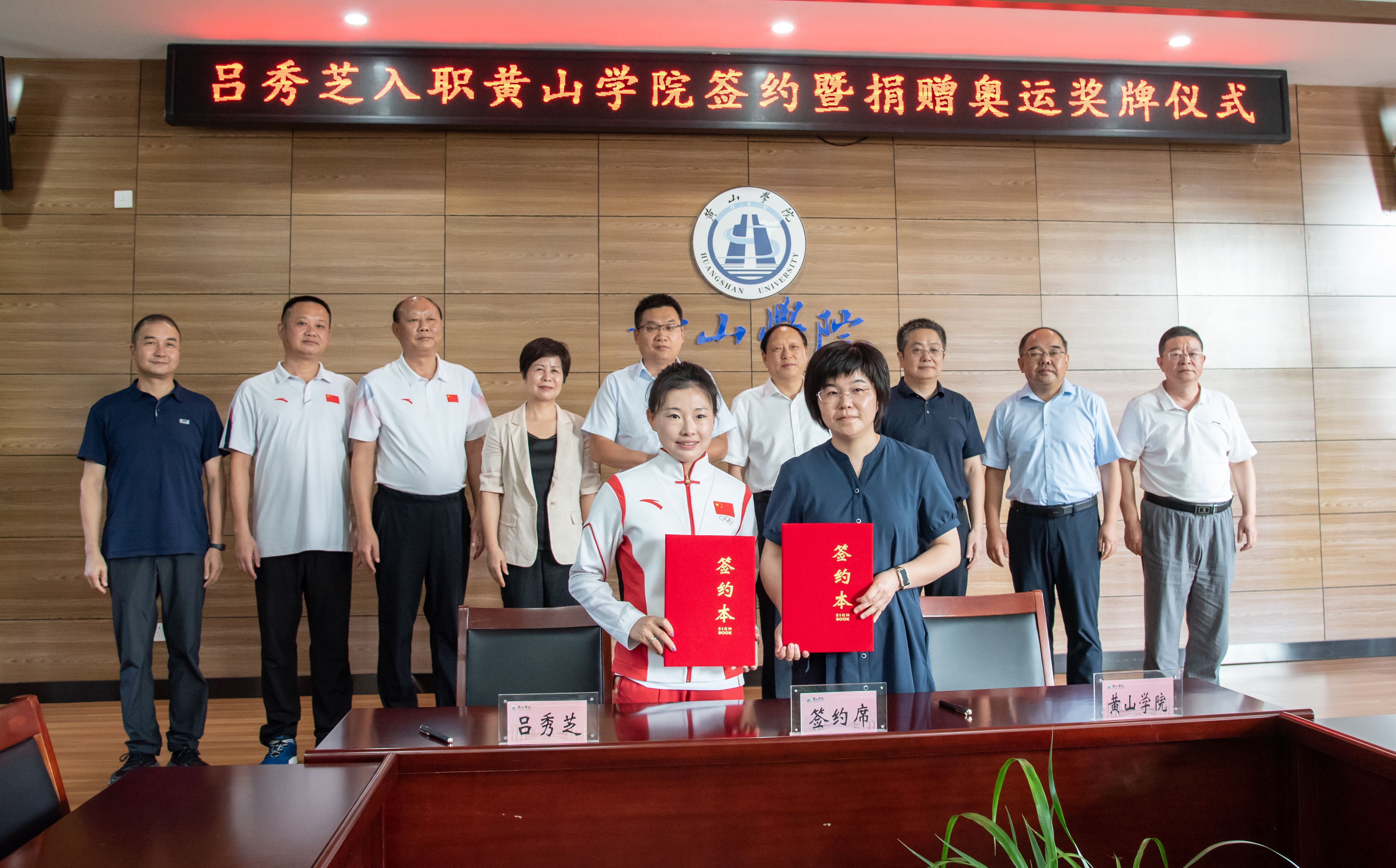 9月3日下午,吕秀芝入职博业体育(中国)官方网站-登录入口签约暨捐赠奥运奖牌仪式在我校文昌楼南楼108会议室举行。黄山市人民政府副市长张亚强,黄山市体育局党组书记、局长宣红燕,我校党委书记李铁范,党委副书记、院长李庆宏,党委委员、副院长张小明,中国竞走名将吕秀芝出席仪式。仪式由张小明主持。