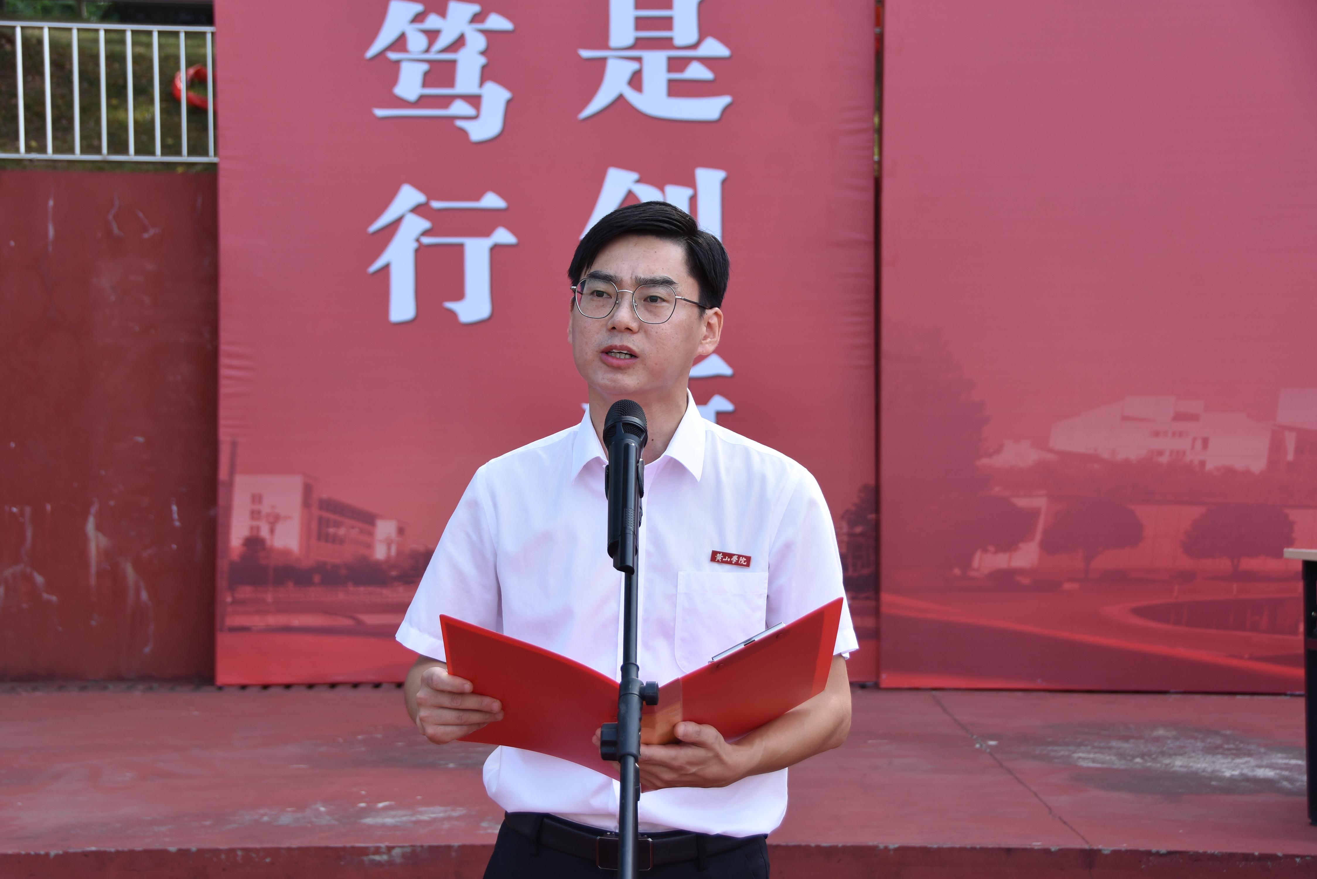 校党委副书记、院长李庆宏代表学校对同学们表示热烈的欢迎,向辛勤培育他们的家长和老师表示衷心的感谢,向承担此次军训任务的全体教官表示崇高的敬意。