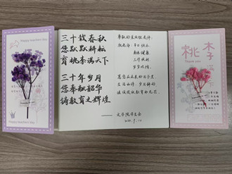 化学化工学院团委、文化与传播学院团委通过举办征集“和老师的暖心瞬间”教师节主题活动,增进师生之间的情感交流,让尊师重教的传统美德在每一位学生心中生根发芽,开花结果。外国语学院同学为上课的老师们精心准备小礼物,通过送贺卡、水和卡套等方式向老师传递莘莘学子最真诚的祝福,收到祝福的老师脸上也洋溢着欣慰的笑容。经济管理学院组织学生在教师节来临之际提前打扫教室卫生,绘制一块块充满温情的黑板报,“教师节快乐”“师恩难忘”等字样在黑板上充分表达了学院学子对授课老师表达最真挚的敬意,传递最温暖的祝福;同学们亲手将花朵送给最美丽的老师,祝福为学生提灯引路、育梦成光的老师教师节快乐。