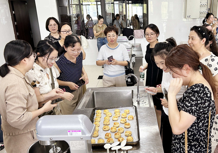 经过一个多小时的努力,一盘盘形态各异、香气扑鼻的月饼终于出炉。老师们纷纷拿起自己的作品拍照留念,并迫不及待地品尝起来。那份由自己亲手制作的月饼,不仅味道格外香甜,更承载着对家人、同事的深深祝福和对传统文化的热爱与传承。