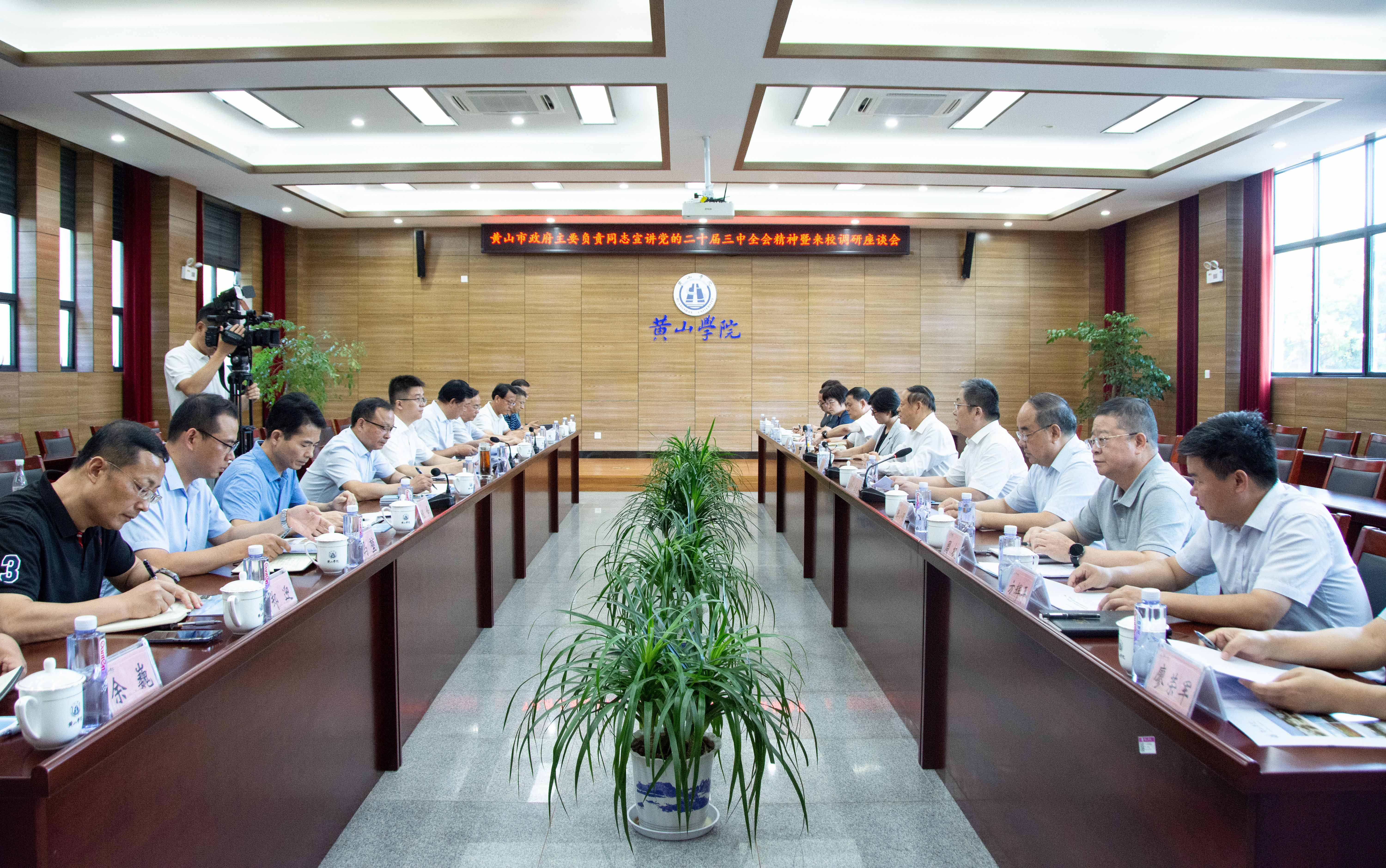 9月18日下午,黄山市委副书记、市长何毅来我校宣讲党的二十届三中全会精神,并调研学校人才培养、学科建设、硕士单位建设等工作。副市长王恒来,市政府秘书长李炜陪同调研,我校领导李铁范、李庆宏、章文静、张小明、胡海生参加调研。调研座谈会由我校党委副书记、院长李庆宏主持。
