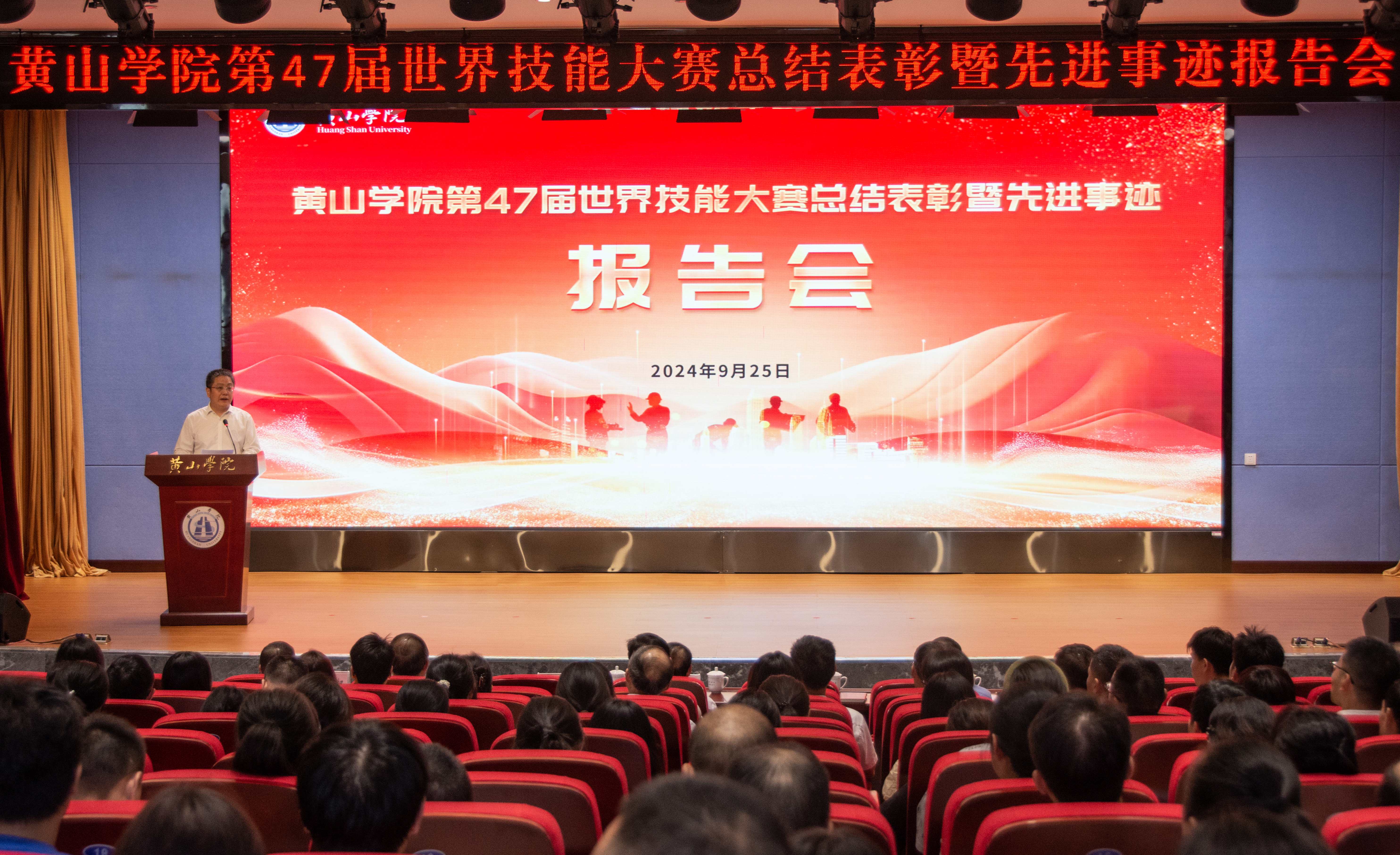 为表彰在世界技能大赛中取得优异成绩的选手和教练团队,分享他们的先进事迹和宝贵经验,9月25日下午,我校在文博楼二楼报告厅举行第47届世界技能大赛总结表彰暨先进事迹报告会。校领导李铁范、李庆宏、章文静、张小明、胡海生出席会议。会议由校党委副书记、院长李庆宏主持。