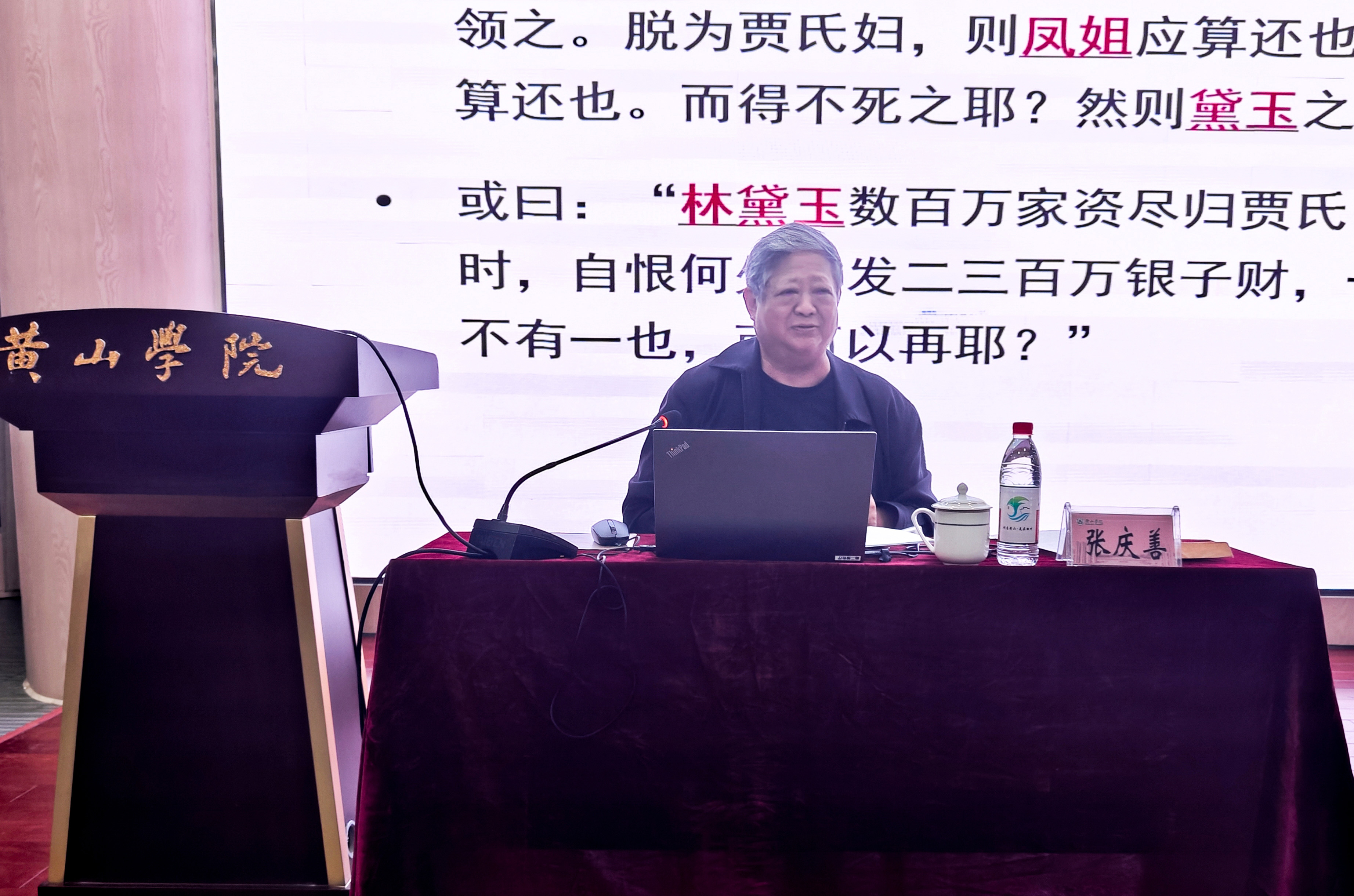 张庆善以《我们应该怎样读〈红楼梦〉——从林黛玉的财产哪去了说开去》为题,与在场师生一起研读经典,品味人生。