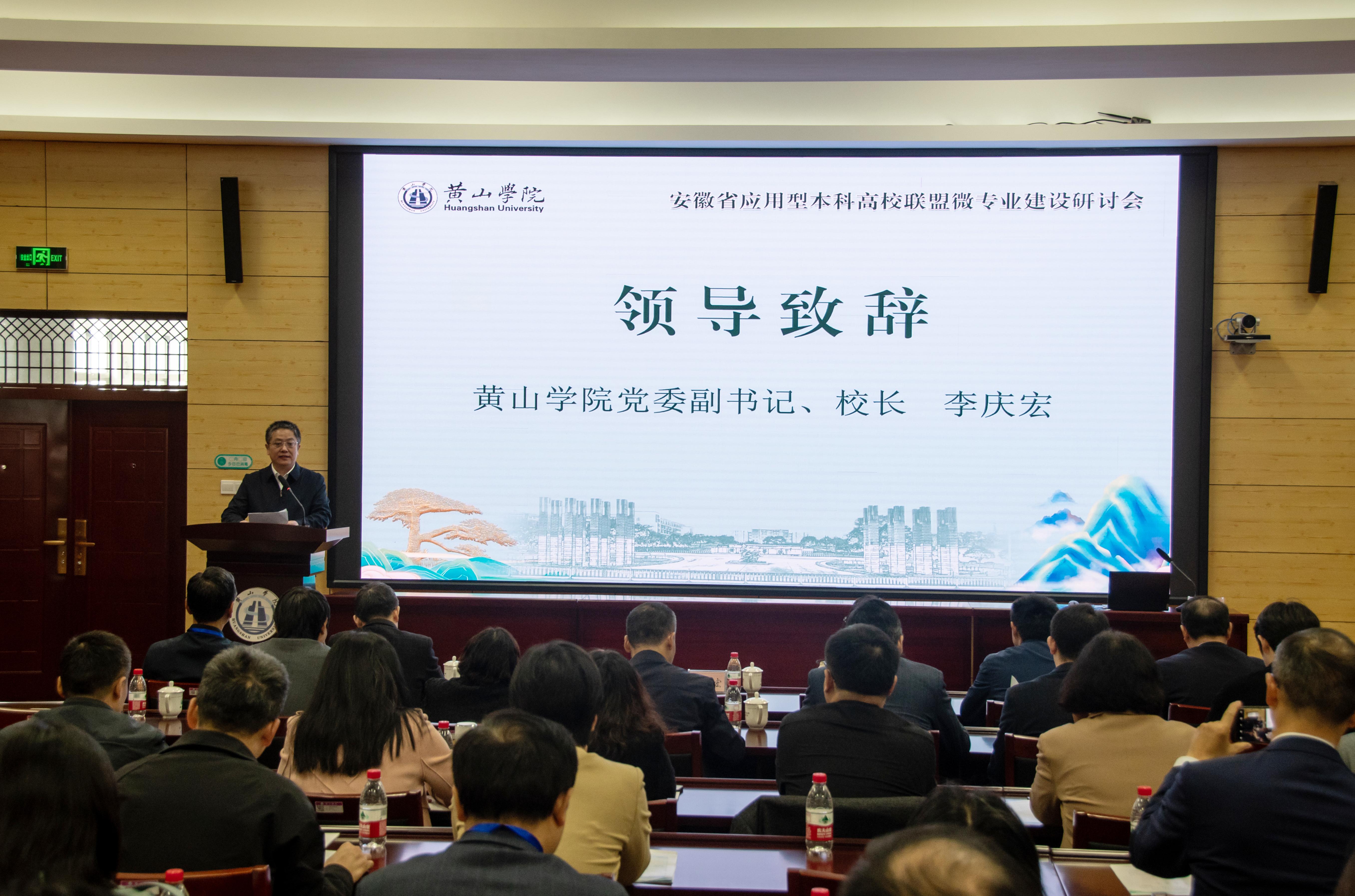 李庆宏在致辞中对联盟高校各位专家的到来表示热烈欢迎,他介绍了我校的基本情况和办学特色。他强调,博业体育(中国)官方网站-登录入口始终坚持“地方性、应用型、国际化”办学定位,打造“旅游、生态、徽文化”办学特色,以建设地方应用型高水平大学为目标,不断加强内涵建设,着力提高人才培养质量。李庆宏表示,本次研讨会为我校提供了宝贵的学习交流机会,也为探索我省高等教育的高质量发展、微专业建设提供了交流平台。