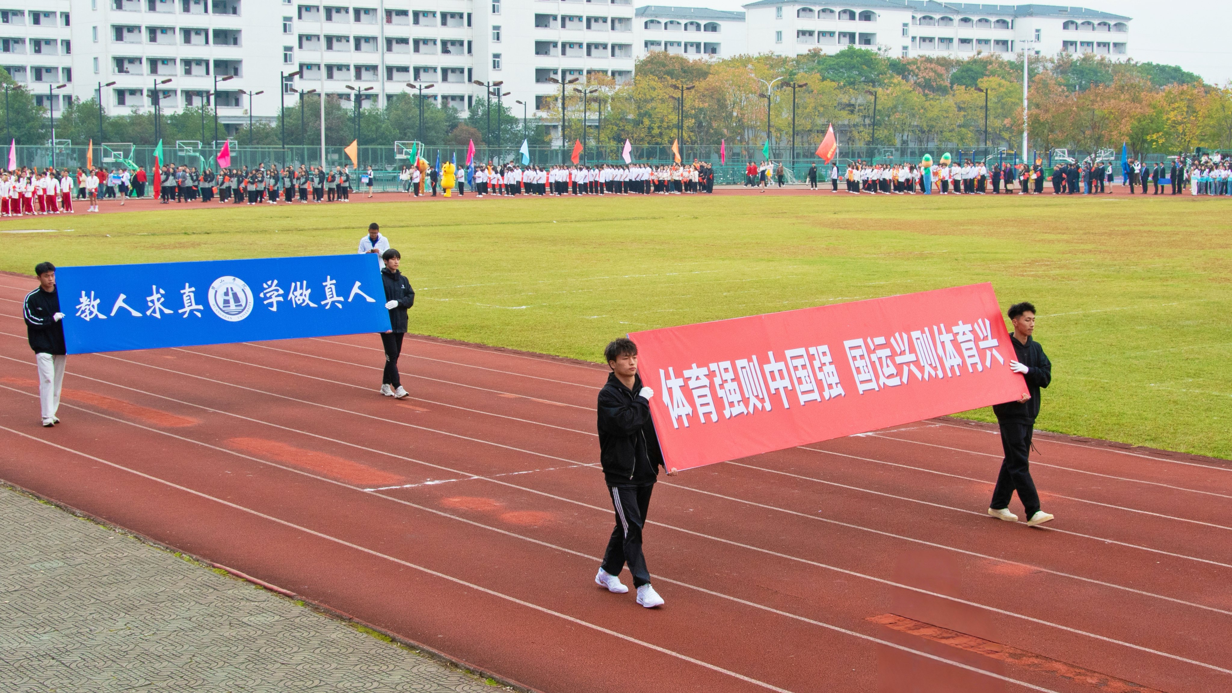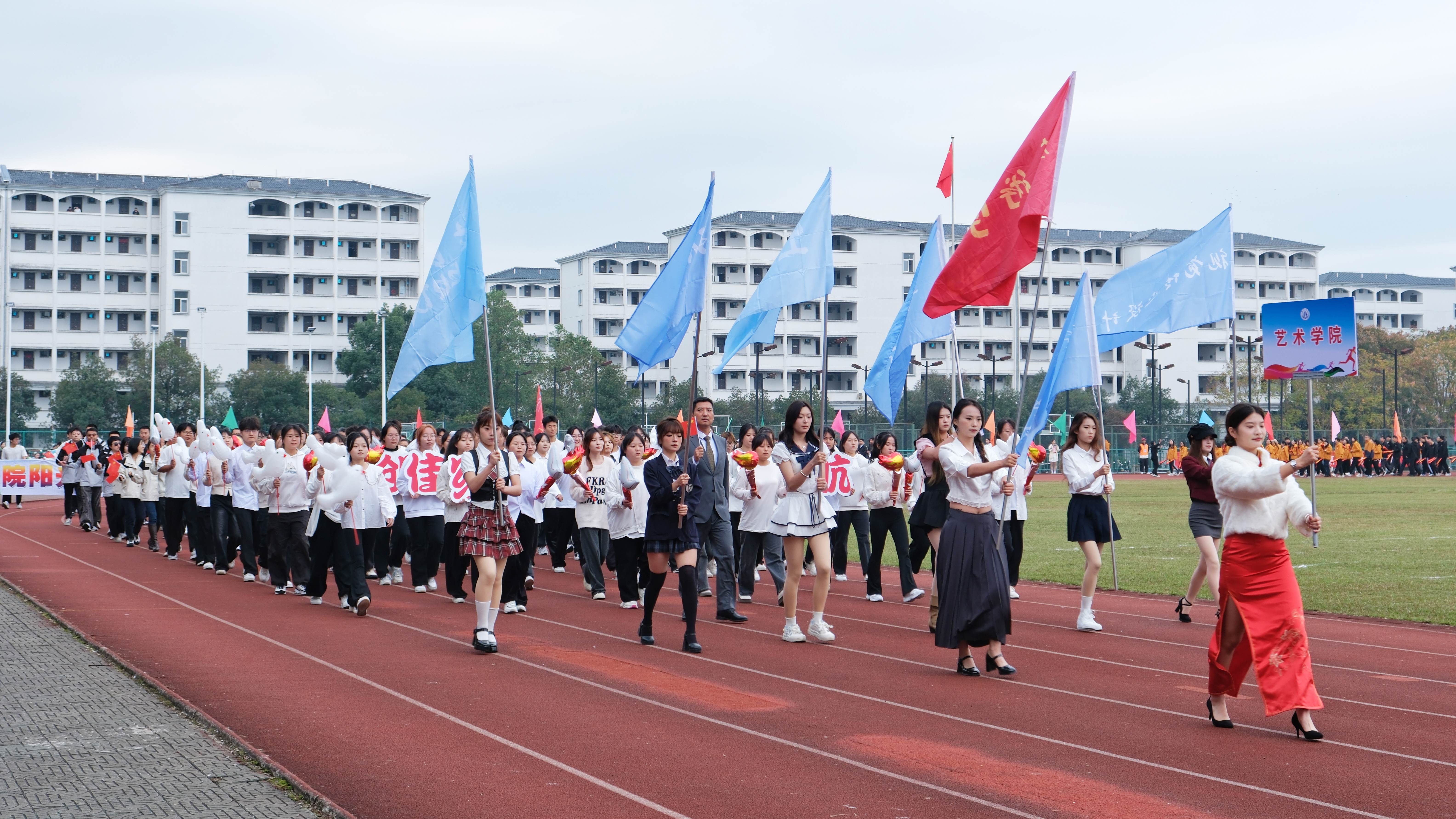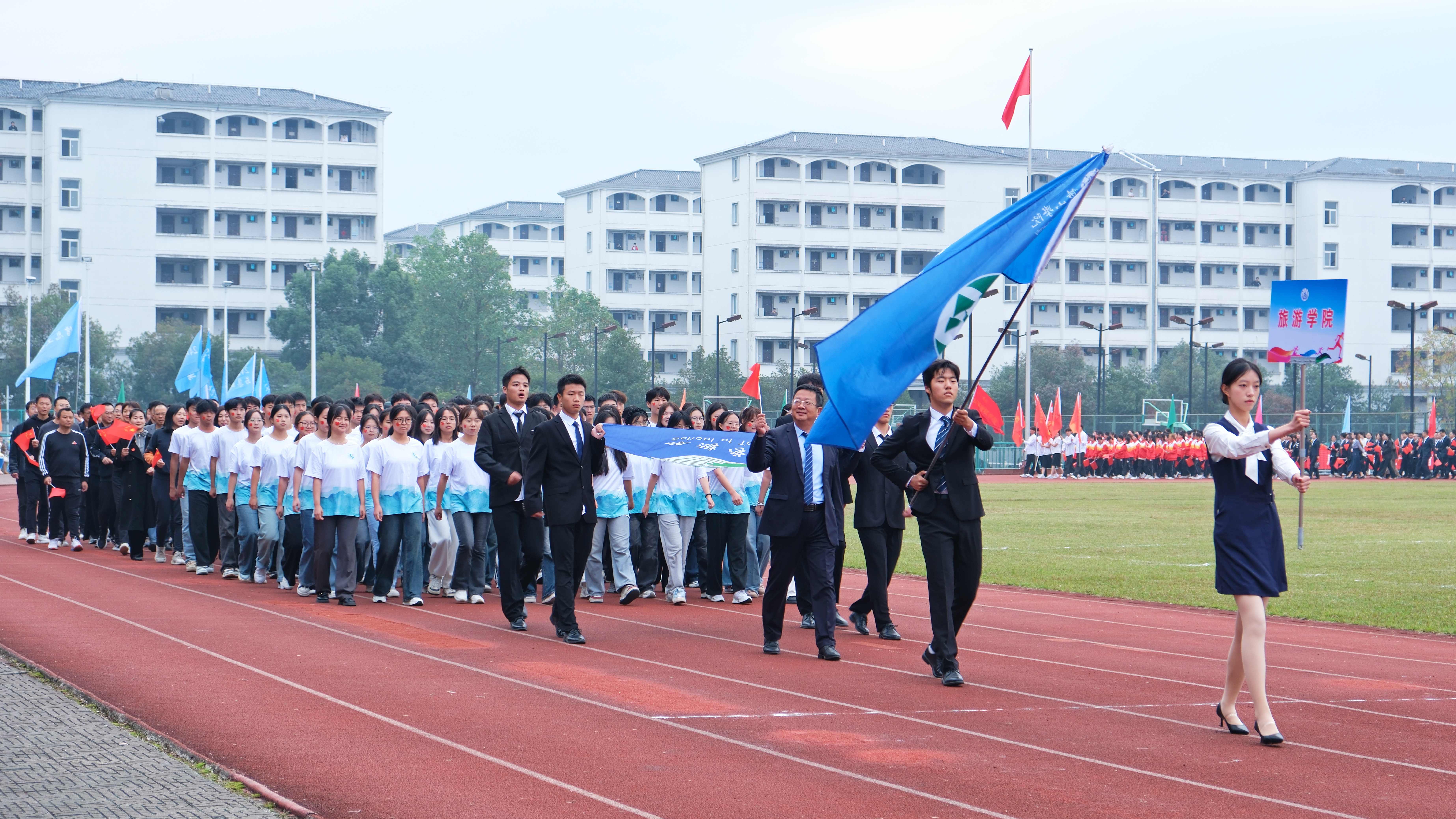 上午8时30分,伴随着雄壮激昂的《运动员进行曲》,运动会开幕式拉开帷幕。国旗、校旗、会旗、标语牌等方阵率先经过主席台入场。在彩旗队方阵的引领下,由各学院师生、部门教职工组成的20支运动员方阵、由体育学院师生组成的裁判员方阵依次走过主席台。他们个个精神抖擞、意气风发,迈着坚定的步伐,展现出昂扬的斗志和青春的活力。