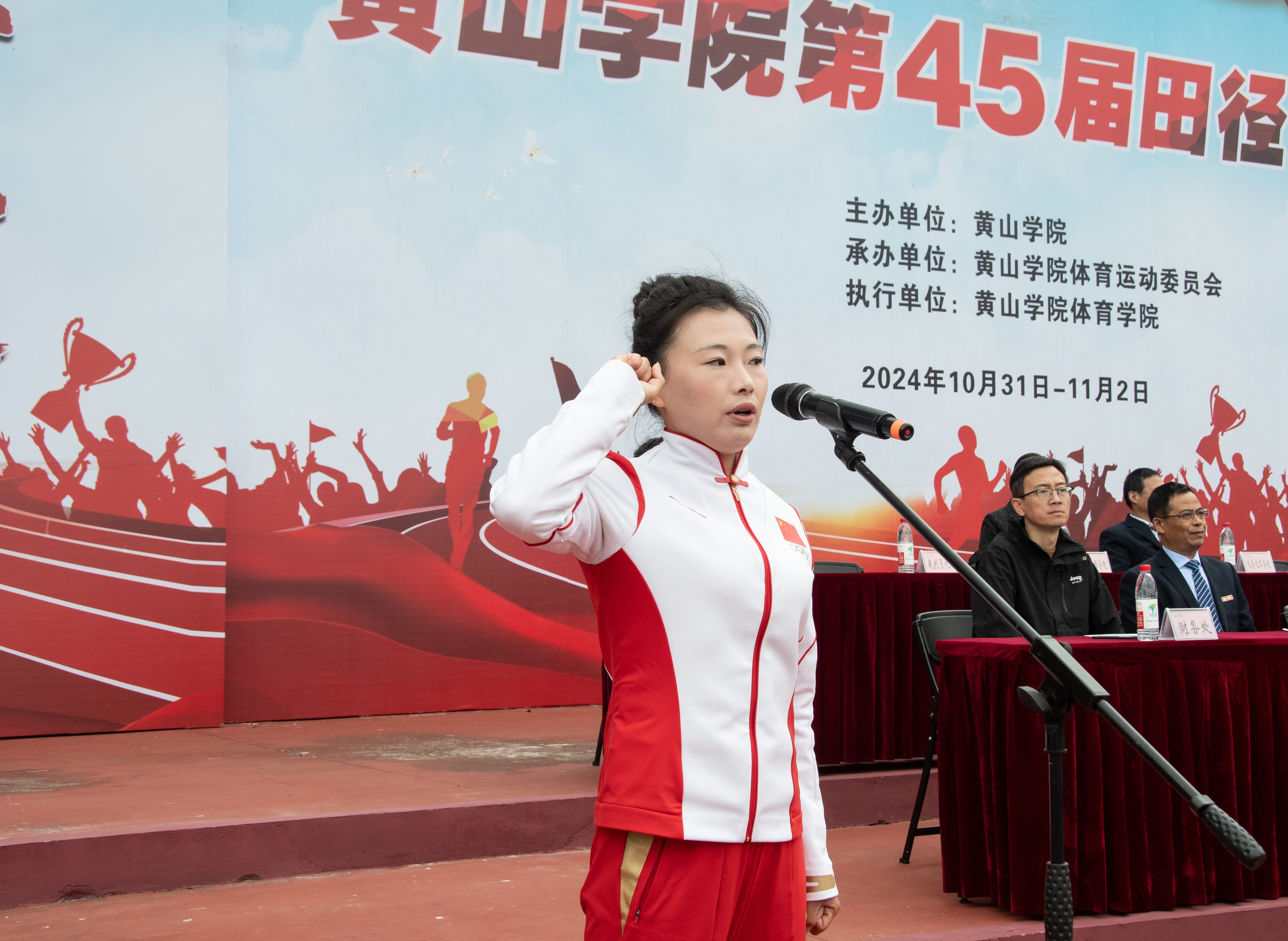 体育学院教师吕秀芝,体育学院21级社体专业学生郑左希,分别代表裁判员和运动员进行宣誓。
