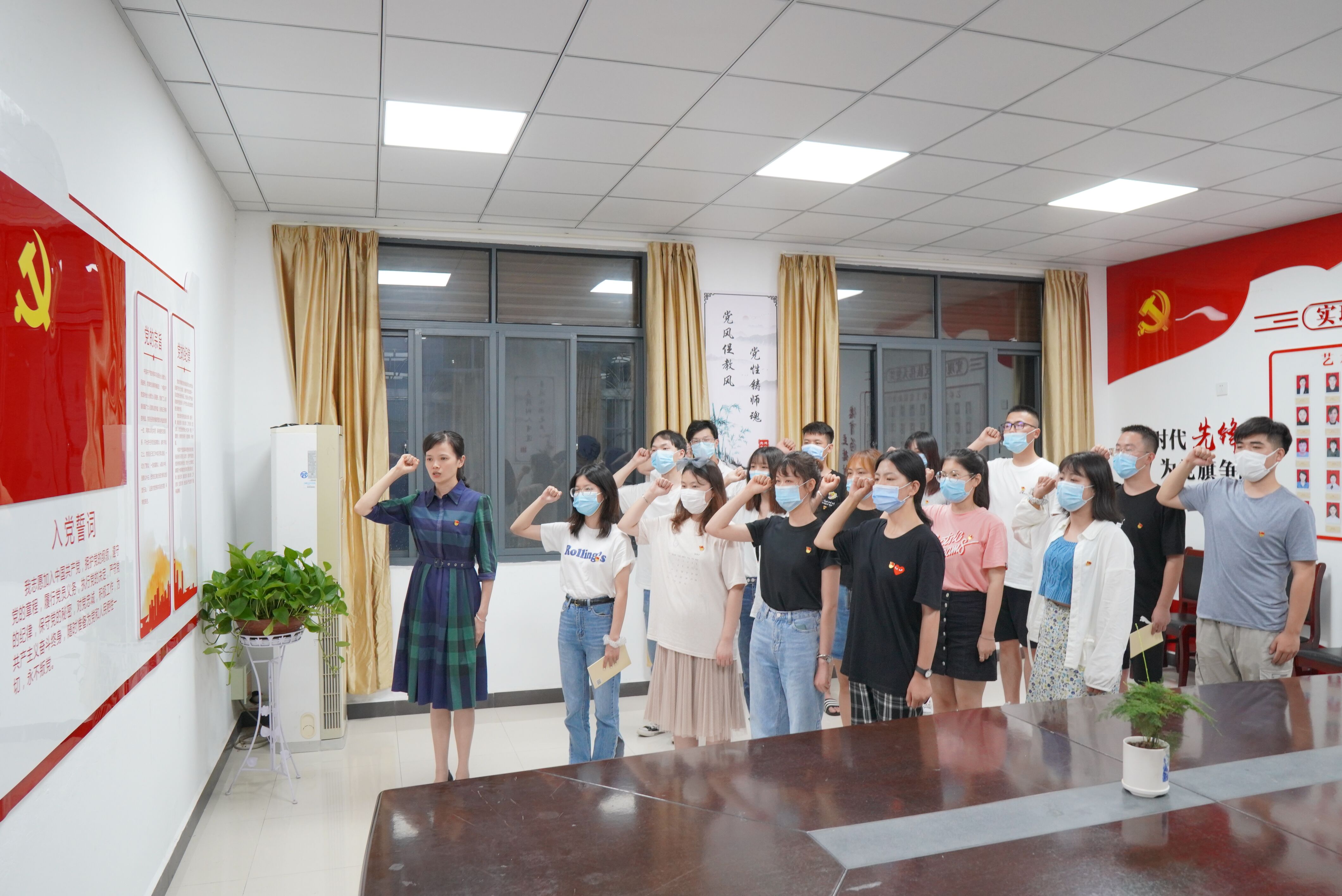 最后,艺术学院党委向每名毕业生党员赠送了《党章》和党徽,在余雪芳的带领下,全体人员重温了入党誓词。随后,支部书记就毕业生党组织关系转接等工作作了解读与安排。