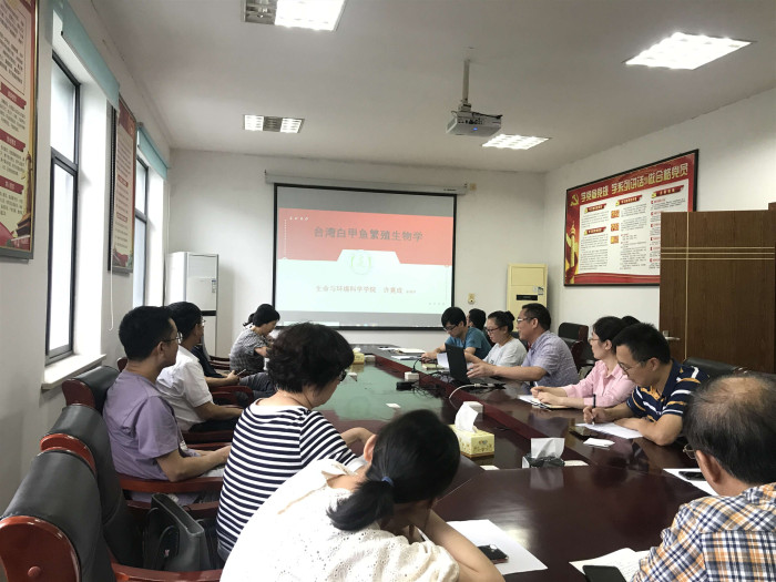 7月8日下午,生环学院在天都园林三楼会议室举办学术报告会,许竟成副教授为生环学院师生作题为“台湾白甲鱼(Onychostoma barbatulum)的繁殖生物学”的学术报告。