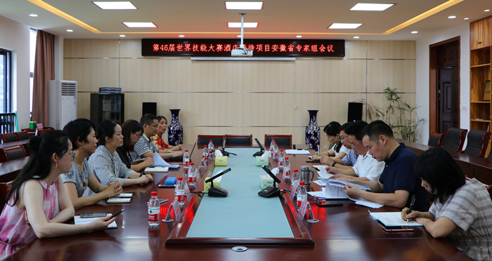 7月9日下午,第46届世界技能大赛酒店接待项目安徽省专家组会议在外国语学院5402会议室召开。酒店接待项目专家组成员、集训基地领导小组部分成员及外国语学院党政领导班子参加会议。