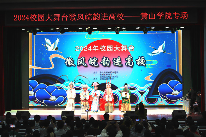 为传承和弘扬中华优秀传统文化,丰富学生校园文化生活,11月5日晚,由中共安徽省委宣传部、省教育厅、省文旅厅主办,省徽京剧院承办的2024年“徽风皖韵进高校”活动在我校大学生活动中心二楼大礼堂举行。