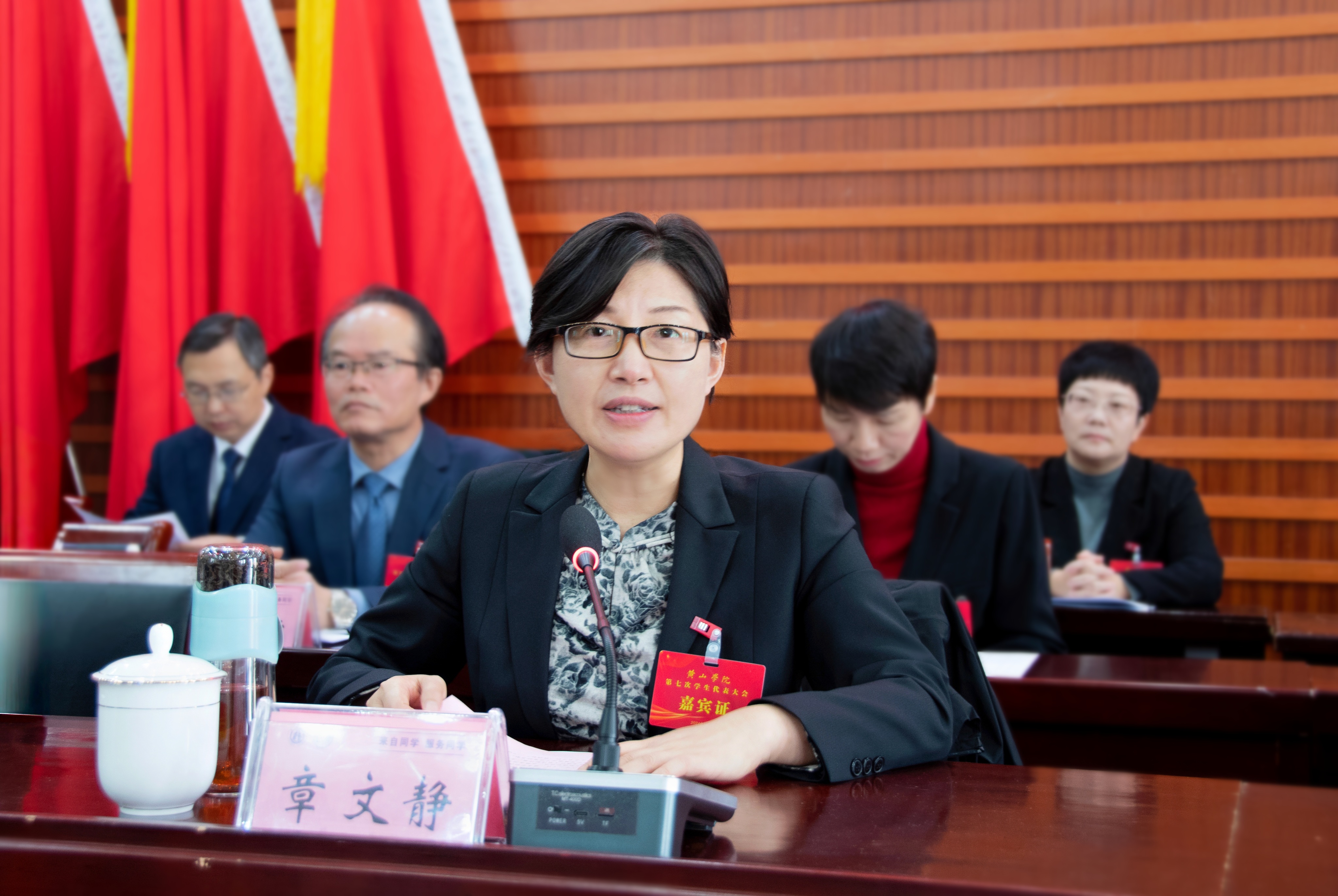 章文静代表校党委向大会的召开表示祝贺。她在讲话中充分肯定了近年来我校学生会工作所取得的成绩以及广大学生在学校建设和发展中作出的重要贡献,对广大青年学生和全校各级学生组织提出三点希望和要求,一是立大志,有理想,做自觉自信的新时代中国青年。学生会作为党联系青年的桥梁纽带,要站在党的事业后继有人的角度,用党的创新理论统一思想、统一意志、统一行动,铸牢听党话、跟党走的立身之本和政治之魂,深化青年学生的思想政治引领,帮助广大同学自觉做党的理论的坚定信仰者和忠实实践者。二是成大才,强本领,做接续奋斗的新时代中国青年。学生会要把服务同学成长和支持学校育人工作高质量发展有机统一起来,把服务同学的普遍性和针对性统一起来,着力帮助同学提高社会化能力,带动广大同学在社会实践中提高政治素养,做引领广大同学成长的青年组织。三要接地气,敢担当,做无私奉献的新时代中国青年。学生会要以刀刃向内的自我革命精神将改革进行到底,以高校学生会改革攻坚推向深入为契机,纵深推进学生会改革和建设,推动改革不断向学院和班级延伸,以扎实的改革成效赢得广大同学的广泛认可,更好融入党领导下共青团主导的青年组织体系,形成育人合力。
