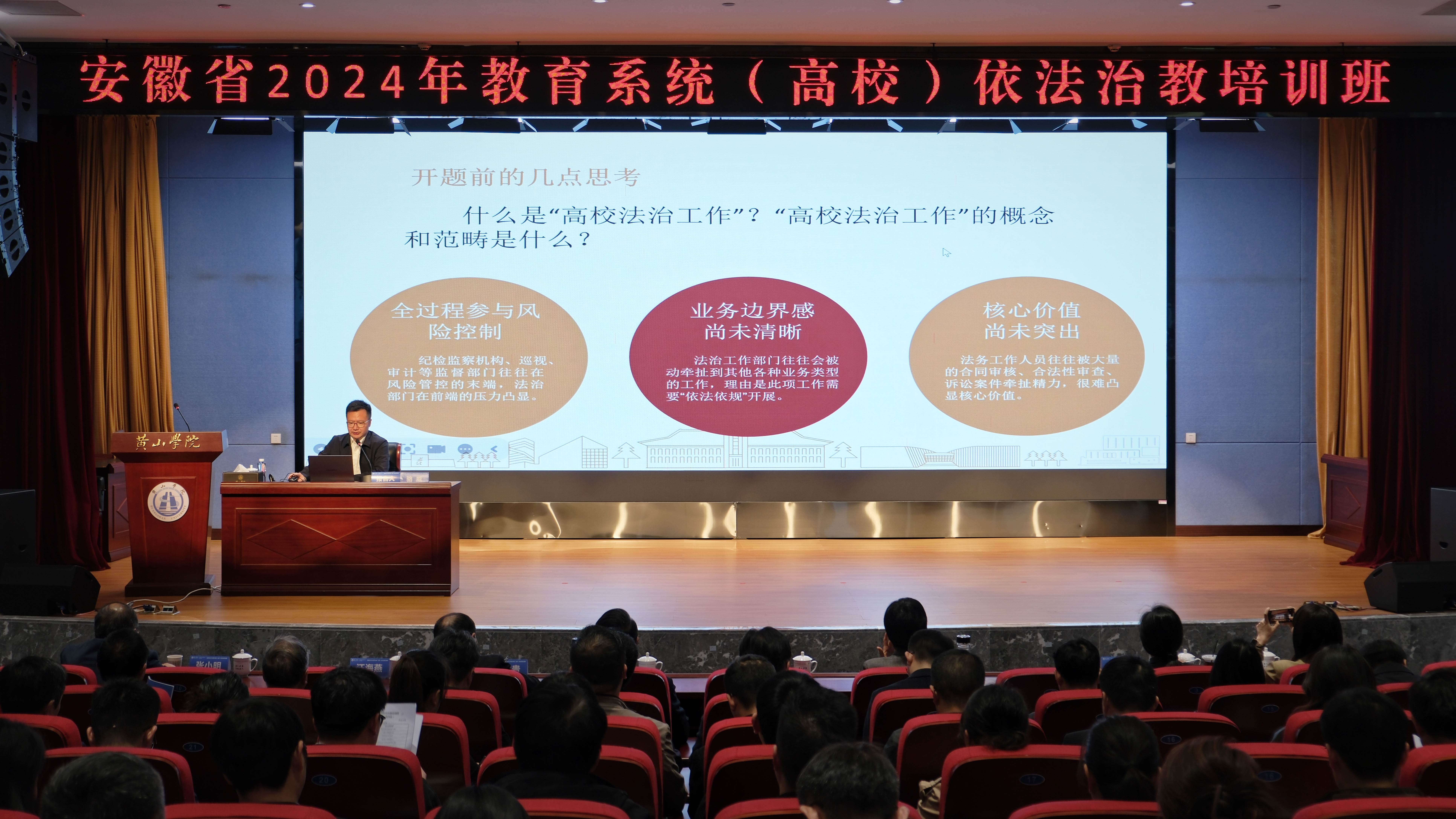 李铁范在培训班开幕致辞中介绍了学校的基本情况、办学特色和以法治校工作。他指出,学校始终坚持打好黄山牌、做好徽文章,立足黄山、面向安徽、辐射长三角,坚守“地方性、应用型、国际化”办学定位,打造“旅游、生态、徽文化”办学特色,以建设地方应用型高水平大学为目标,不断加强内涵建设,着力提高人才培养质量,努力提升办学水平。他强调,依法治校是立校之本、活校之源,也是新时代深化教育综合改革和提升高校治理体系和治理能力现代化的必然要求。一直以来,在省委教育工委和省教育厅的正确领导下,博业体育(中国)官方网站-登录入口始终坚持法治引领,科学搭建治理结构、优化制度体系、完善依法治校格局,形成规范办学与依法治校同频共振的良好局面。面向未来,学校将不断完善治理体系,提升内部治理能力,以法治之力全面助力学校各项事业高质量发展。