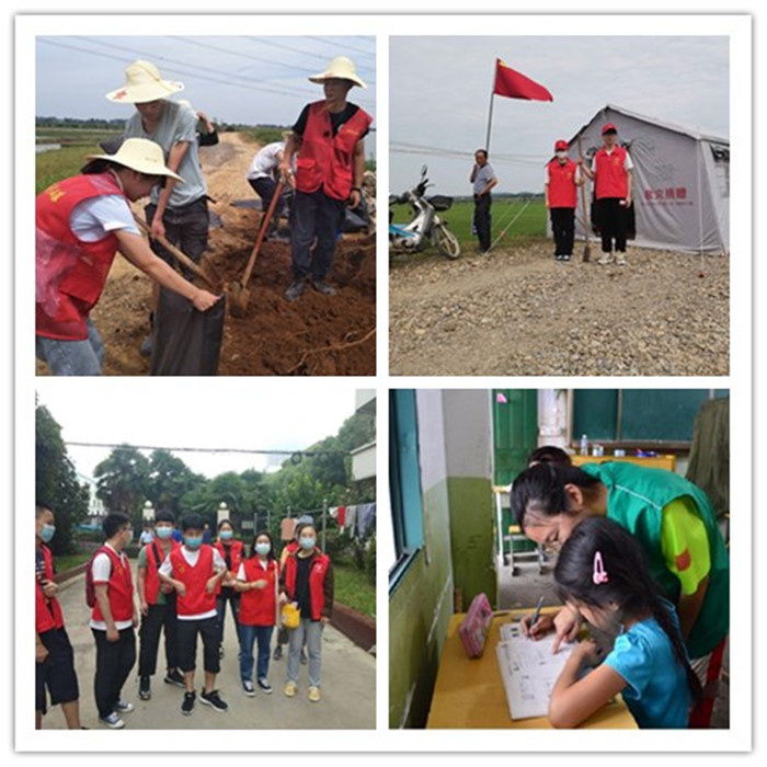 受持续降雨影响,我省多地引发洪涝灾害,面对汛情,数学与统计学院学子积极投身抗洪救灾志愿活动,他们挥洒青春,用自己的汗水守护家园的平安。