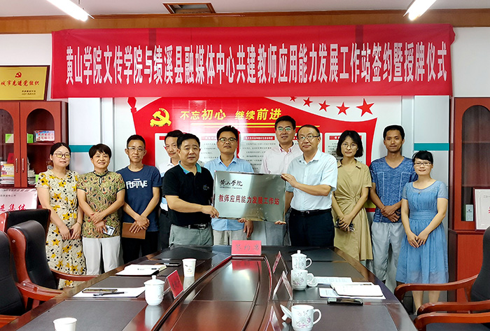 8月10日下午,文化与传播学院党政领导前往绩溪县融媒体中心,举行文传学院教师应用能力发展工作站合作共建协议书签字暨授牌仪式。