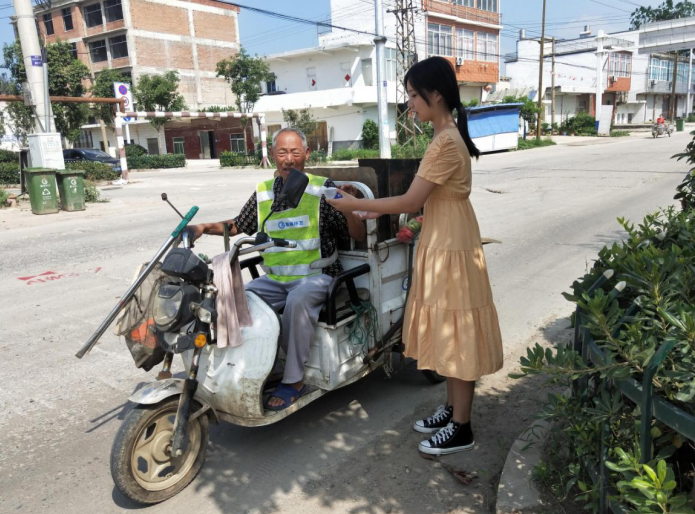 入伏后的滁州,闷热难耐,烈日炎炎,但环卫工人们却毫无怨言坚守在一线认真工作,为了向环卫工人表达敬意,让他们在工作之余享受到一丝清凉。8月27日志愿者们走上凤阳县街头,为在路上辛勤工作的环卫工人送去矿泉水和纸巾,表达对他们辛苦工作的感谢。
